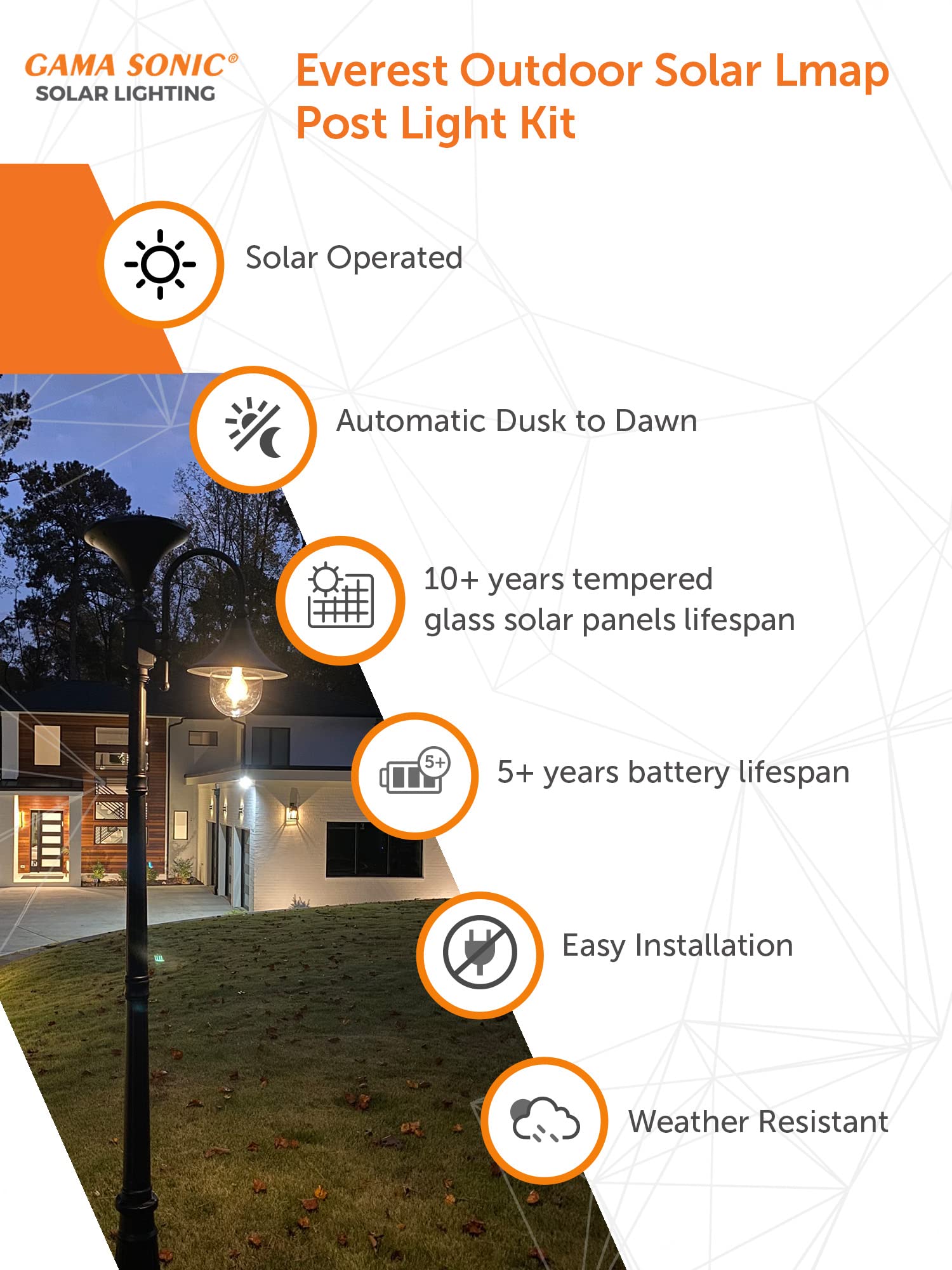 NO WIRING OR COMPLICATED HOOKUPS. No electrical wiring is required for installation, making this Gama Sonic solar outdoor light the perfect light to install while offering a cost and energy efficient alternative to gas and electric outdoor lighting