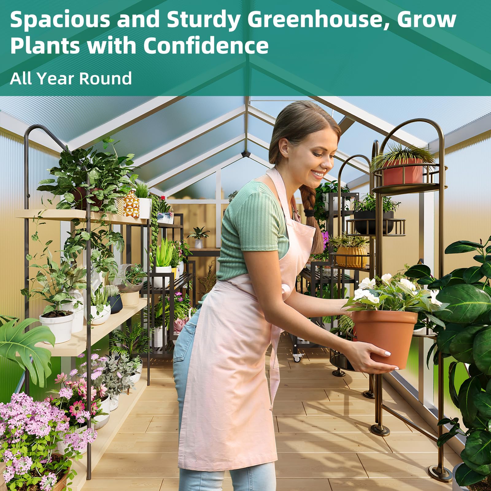 [UV PROTECTION] : Our greenhouses are equipped with panels with UV coating on the surface to protect your plants from harmful sun rays while maximizing exposure to sunlight. This ideal balance promotes healthy growth and vibrant flowers.