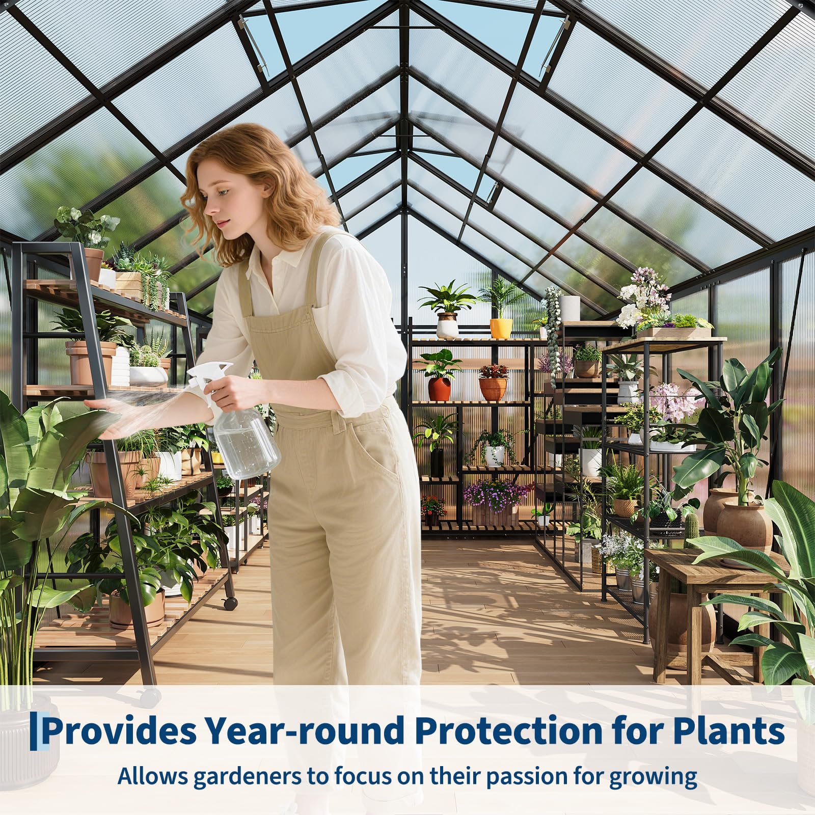 【Effortless Setup】Transform your gardening space in no time. Our all-inclusive kit includes detailed instructions and every tool needed for straightforward assembly. With innovative slide-in polycarbonate panels, installation is 40% quicker and offers 35% stronger fastening compared to conventional systems—giving you a sturdy structure with minimal effort.