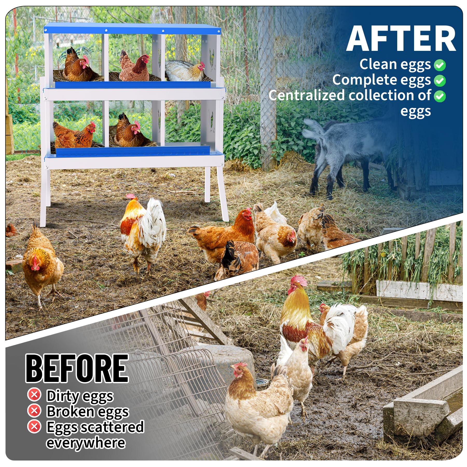 [GALVANIZED STEEL CONSTRUCTION FOR MAXIMUM DURABILITY] Built to withstand years of use, our chicken nesting boxes combine galvanized steel roofing/sides with rust-proof plastic collection trays. Strategically placed ventilation holes maintain perfect airflow. The reinforced structure resists pecking damage while providing insulation from temperature extremes - giving your hens year-round comfort and safety.