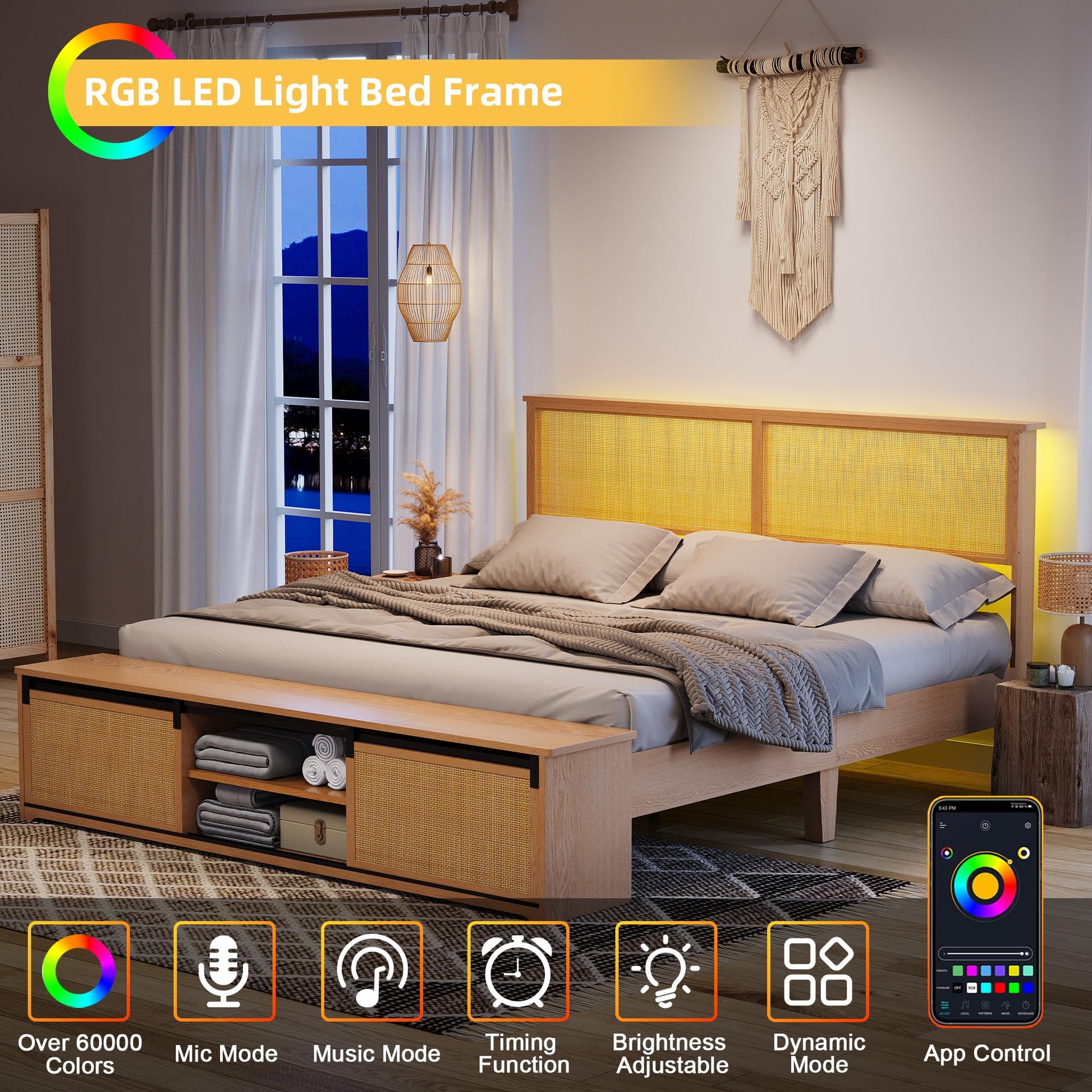 Boho Rattan Elegance: This rattan bed frame blends natural rattan accents on both the headboard and storage cabinet, offering a stylish boho bed frame look that complements modern farmhouse or Boho-inspired decor. Instantly transform your bedroom with natural charm!
