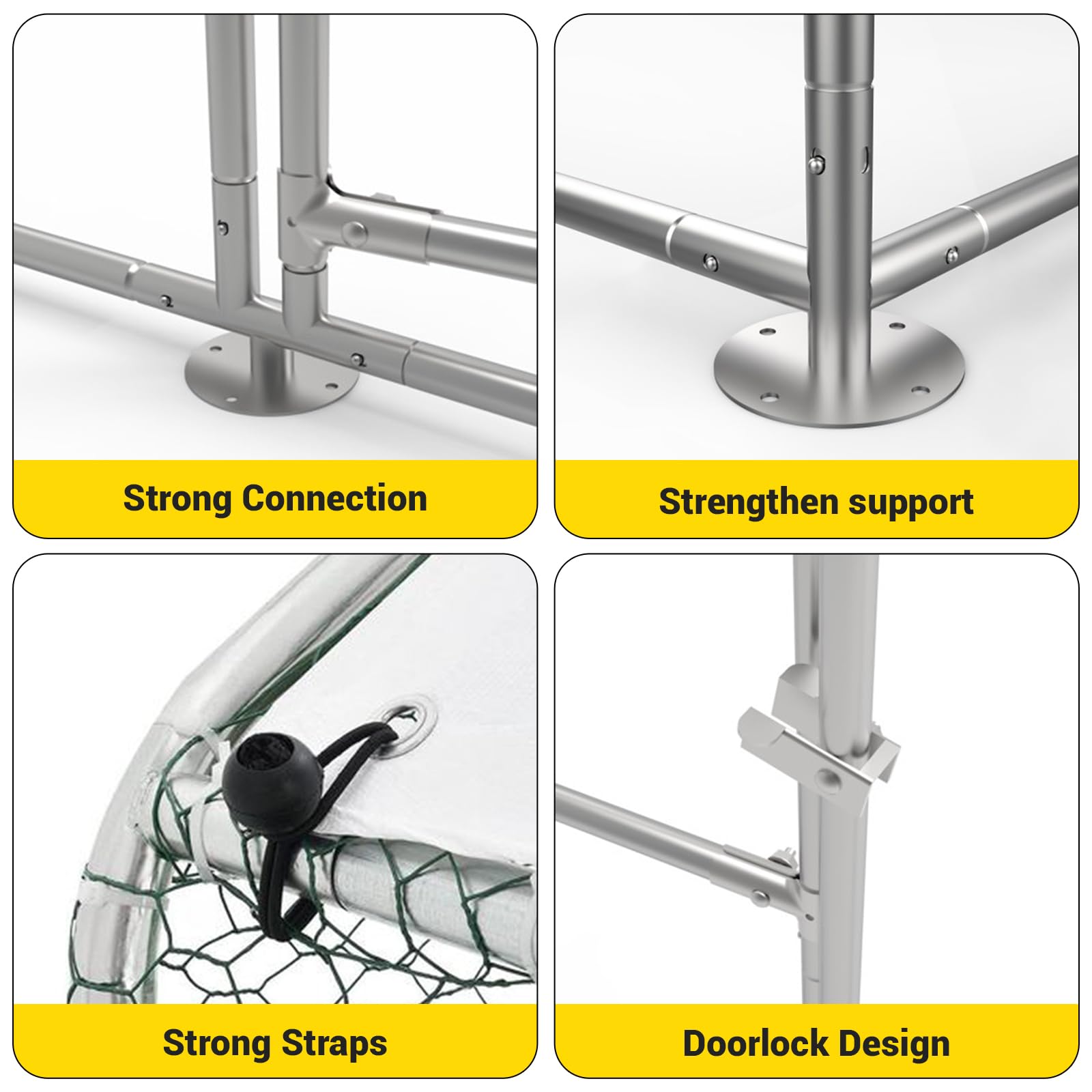 Spacious Walk-In Chicken Coop: this large metal chicken coop provides ample room for chickens, ducks, rabbits, or geese to move freely and comfortably. Perfect for backyard farms or gardens needing a versatile poultry cage