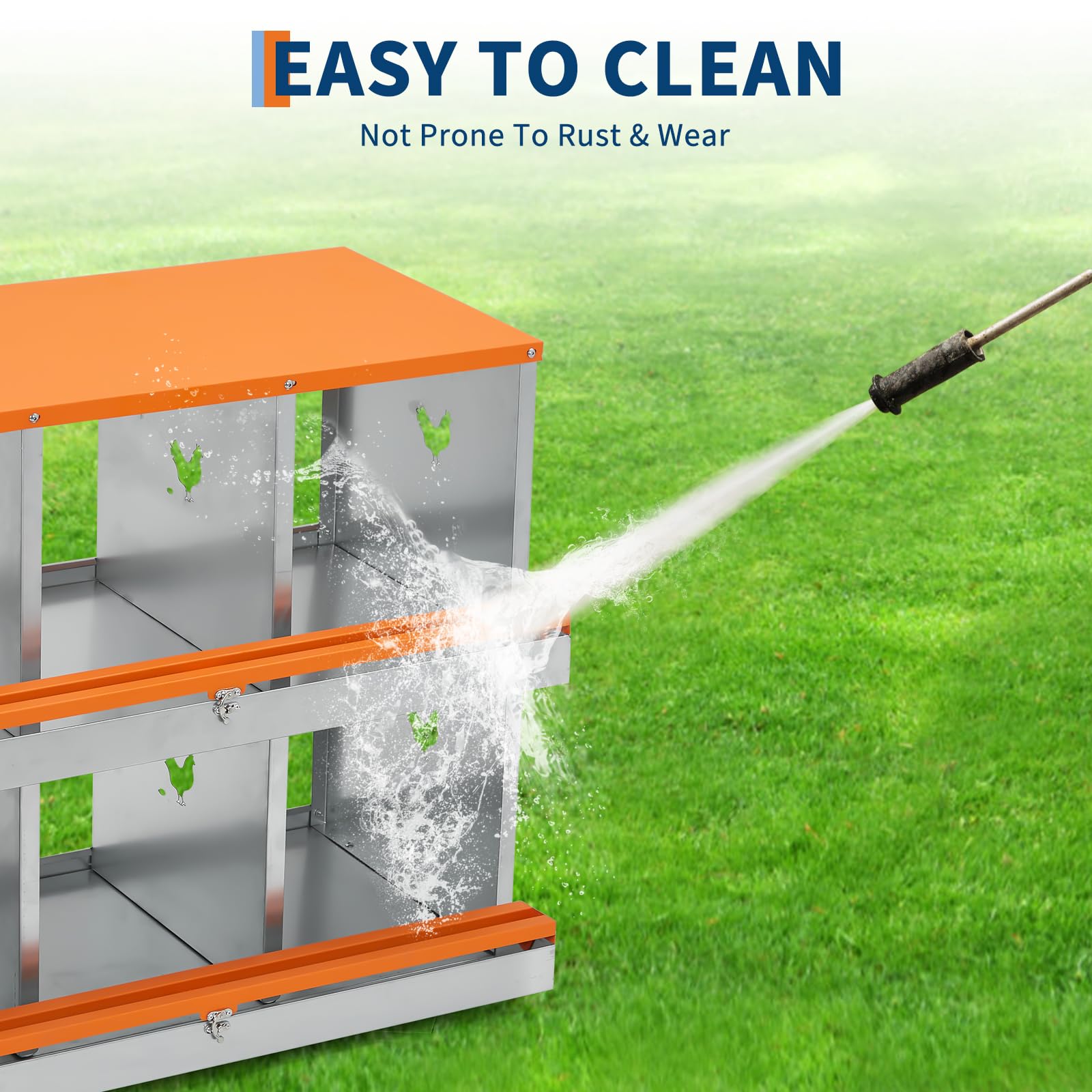 Easy Maintenance & Cleaning: Chicken Nesting Boxes Simply rinse with a garden hose to keep it clean and provide a hygienic laying environment for your hens. Our metal egg crates are fitted with screws perfectly aligned to the pre-loaded holes, ensuring easy assembly.