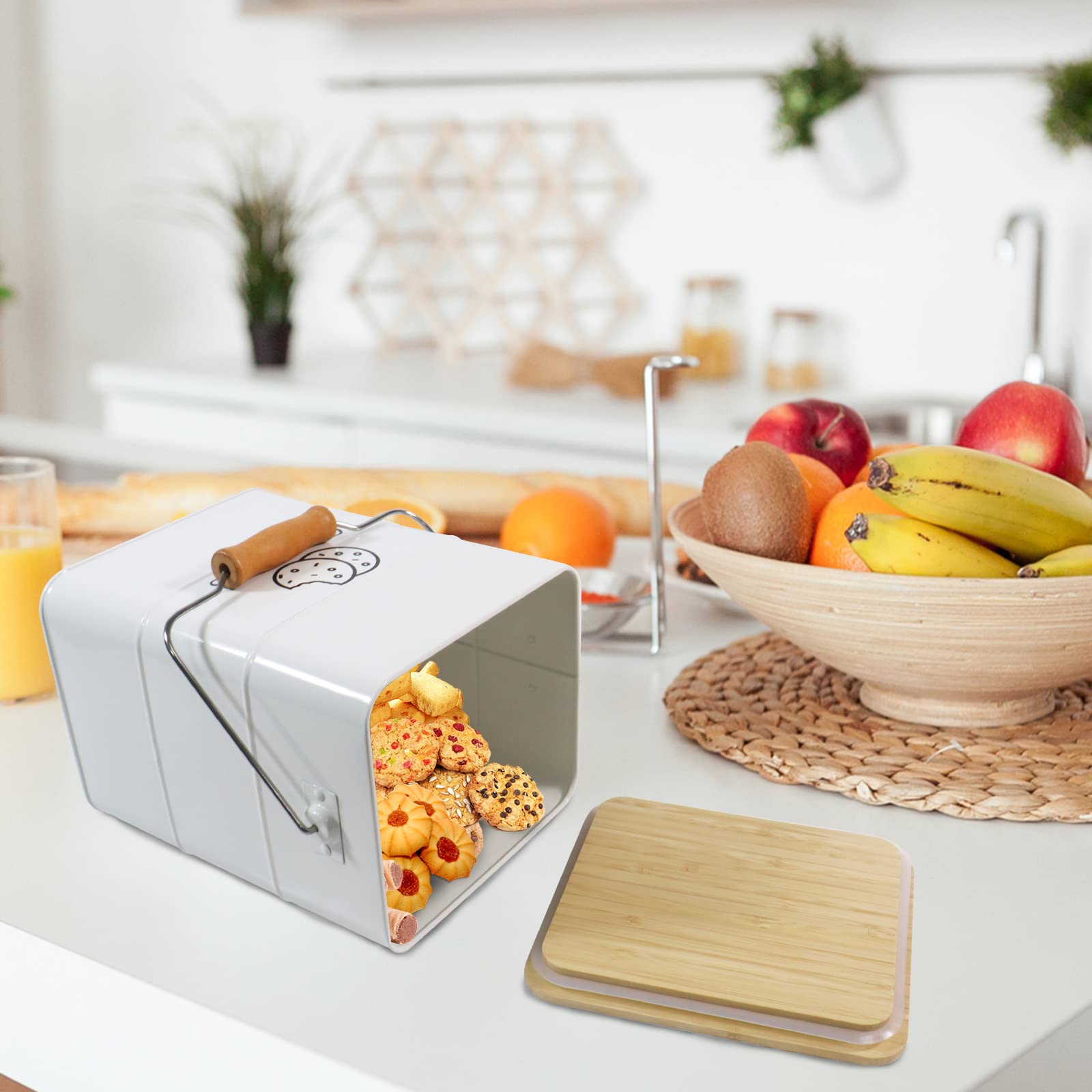 Gdfjiy Cookie Jars, White Cookie Storage Container, Metal Biscuit Tin Snack Jar with Lids Airtight & Handle, Cookies Tin Box, Food Storage Canisters for Candies, Cookies, Biscuits and Snacks