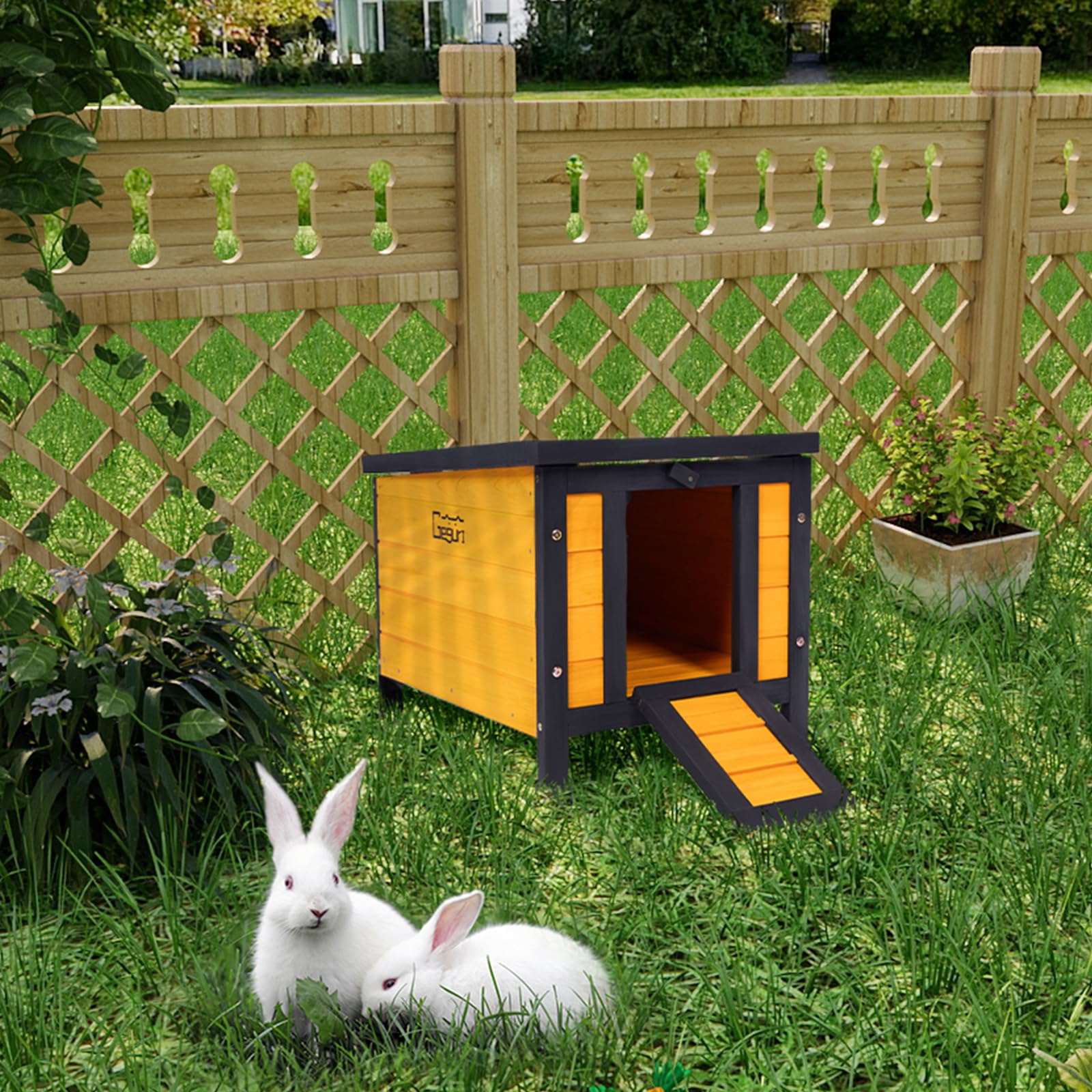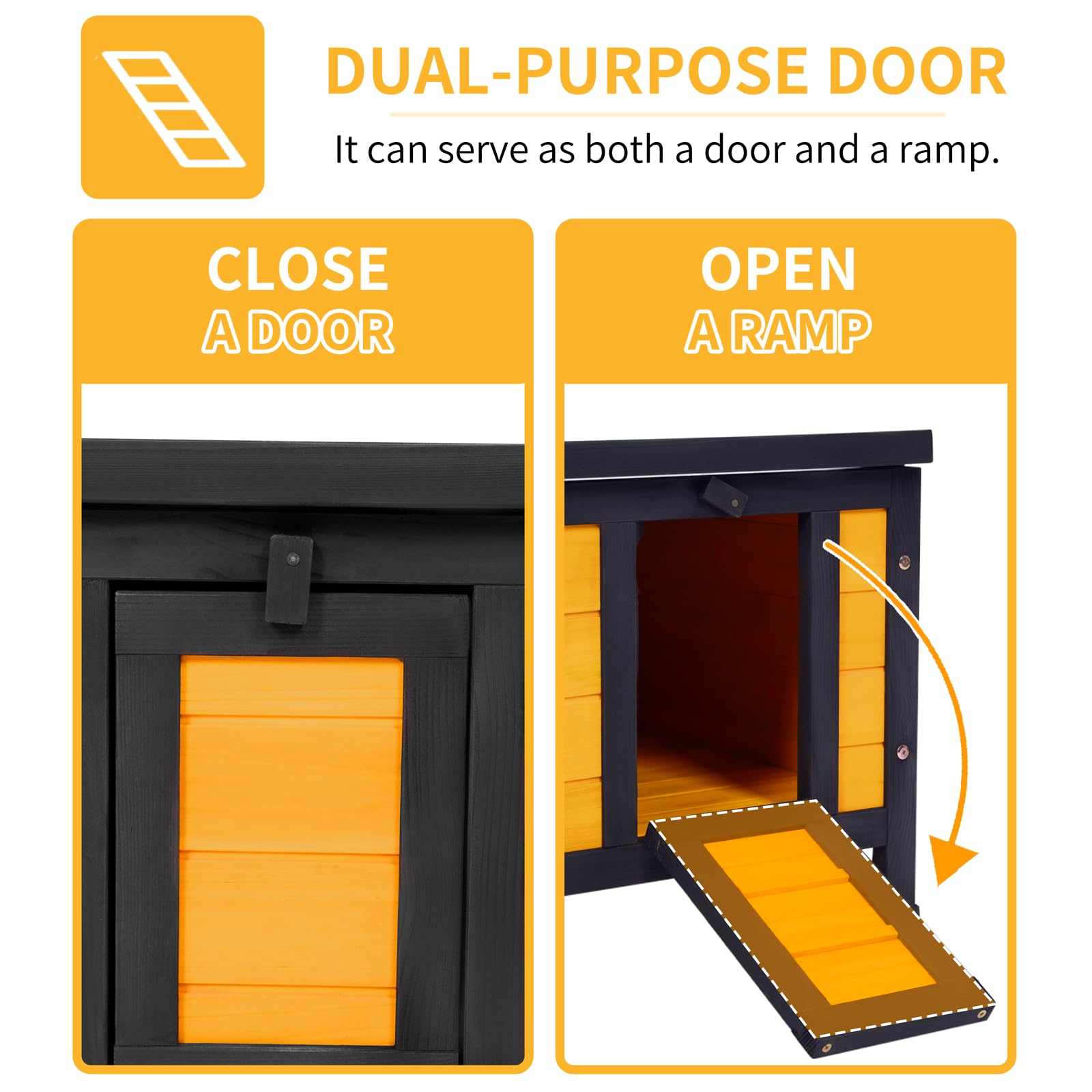 【Easy-Clean Rabbit Cage with Ramp Access】The outdoor cat house features convertible ramp door for elderly/small pets. Full-top opening and 19.5"D×16.5"W×16.9"H interior enables hassle-free cleaning. Wipeable surfaces simplify maintenance for rabbit cage indoor/outdoor use.