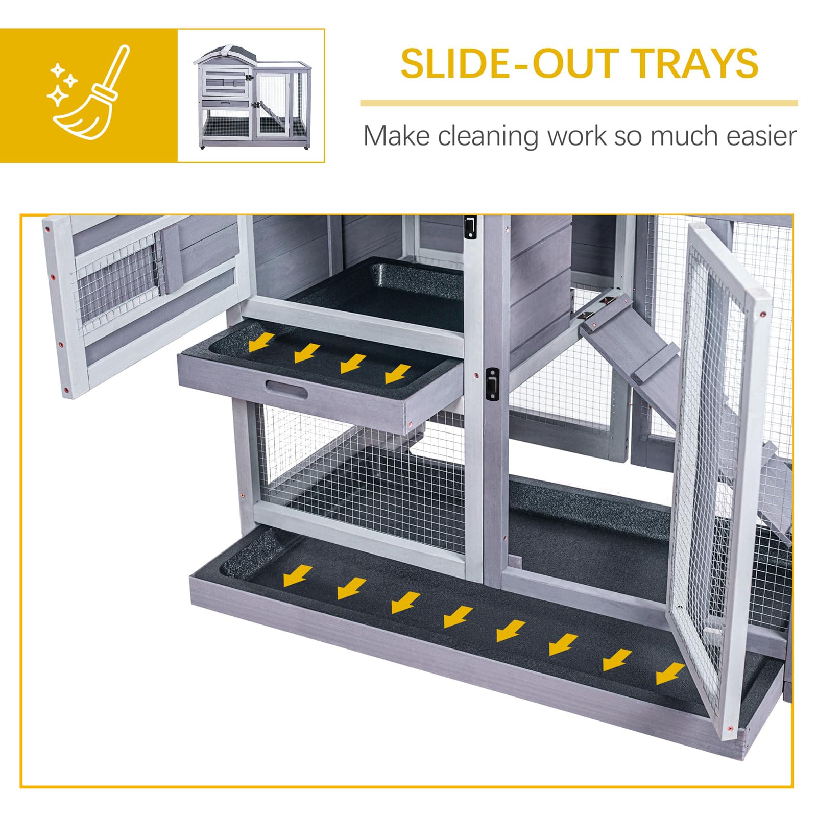 Effortless cleaning: The large hutch includes a removable tray for easy waste disposal and cleaning
