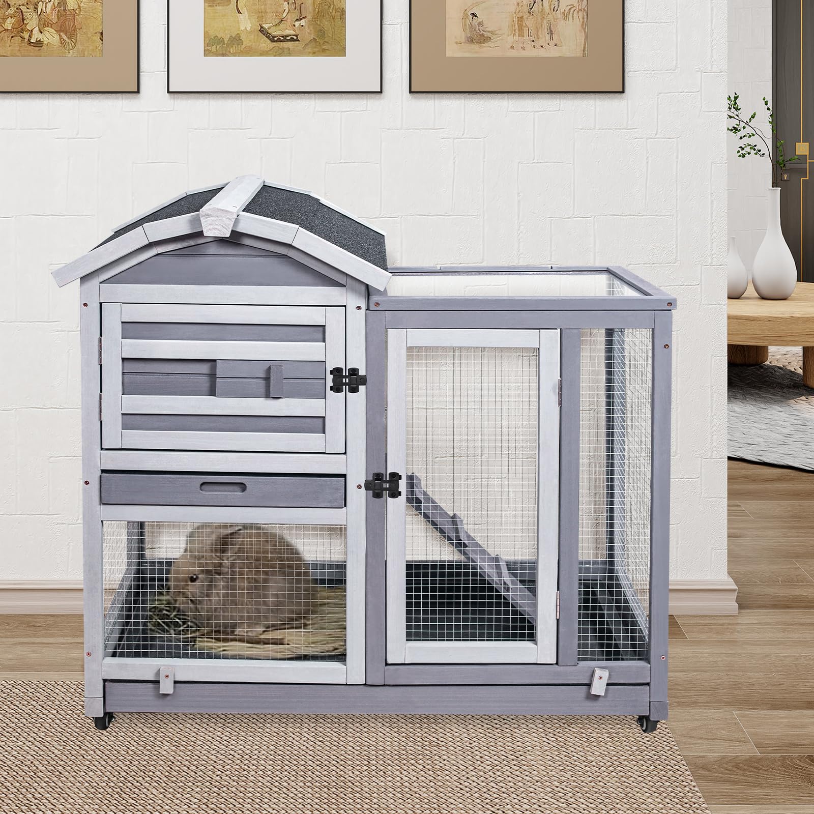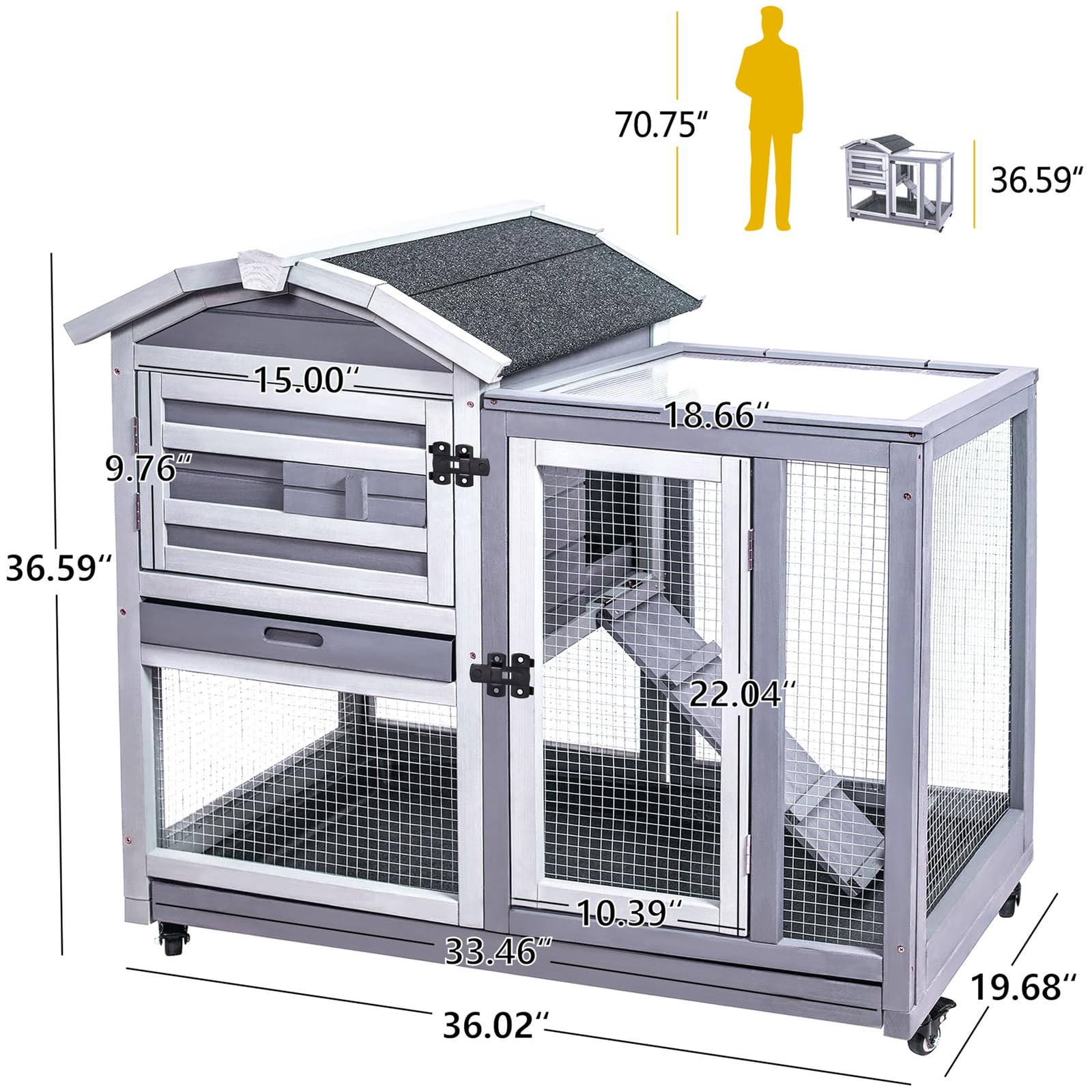 Versatile for small pets: Our hutch is suitable for rabbits, guinea pigs, chicks, hedgehogs, ferrets, and more, offering separate outdoor play and private sleeping areas. Dimensions: 37.51'L x 23.22'W x 36.59"H
