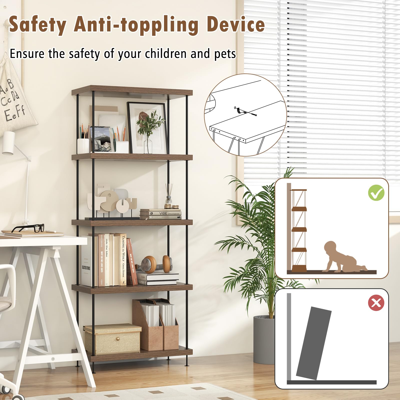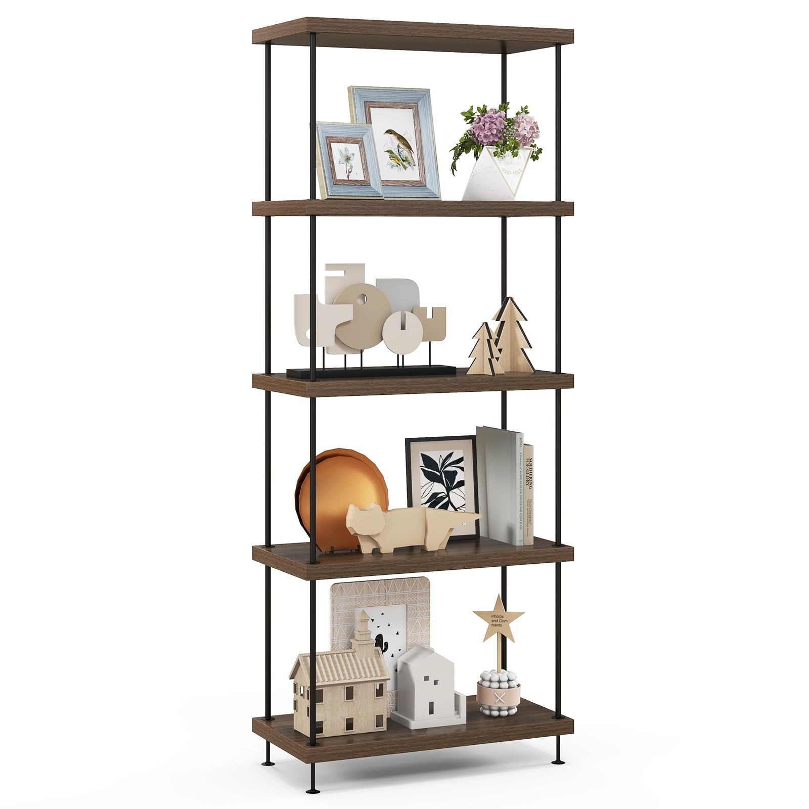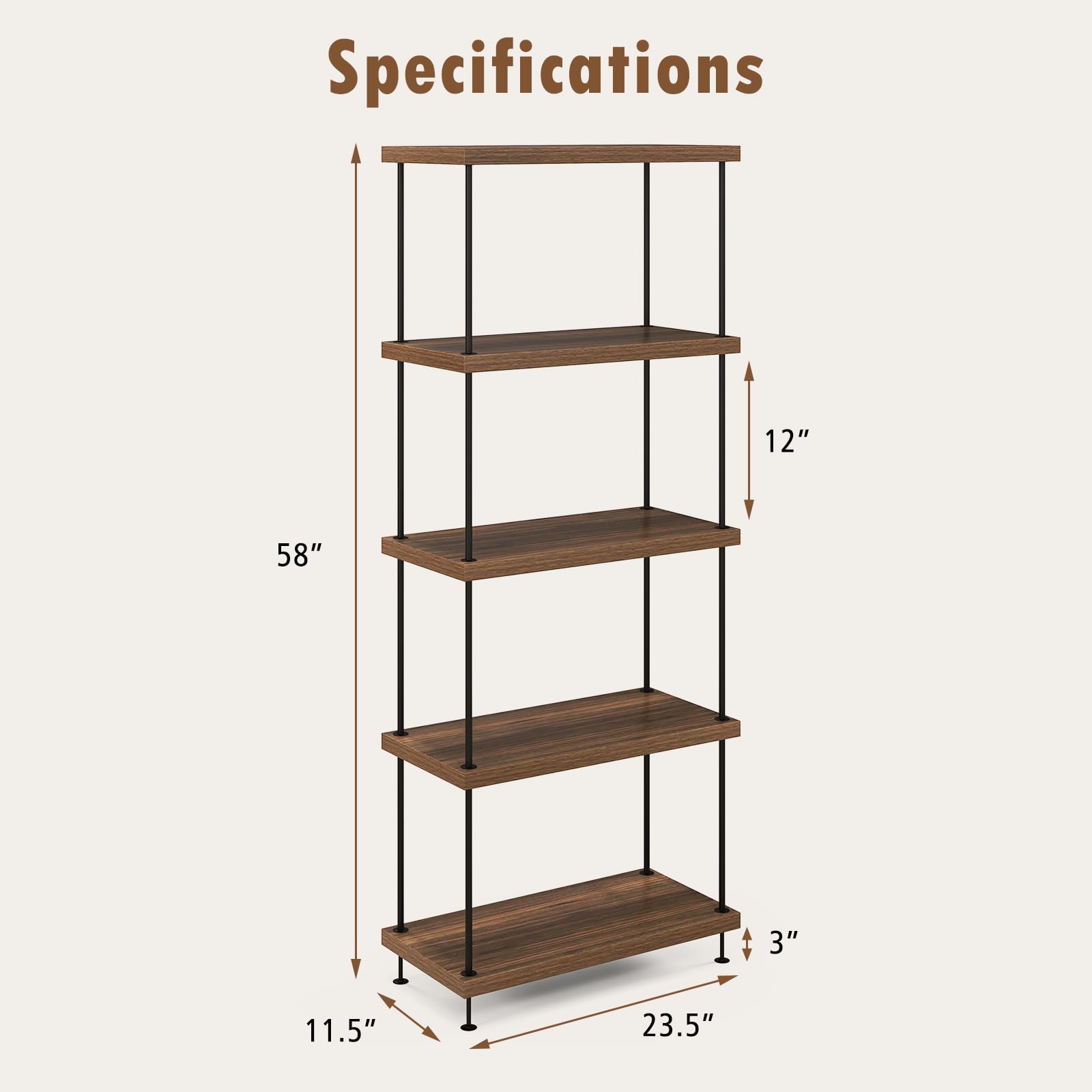Giantex 5-Tier Open-Back Bookshelf, Freestanding Display Rack, Metal Frame Storage Shelf, Industrial Style Bookcase, Home Organizer Unit for Living Room, Bedroom, Study