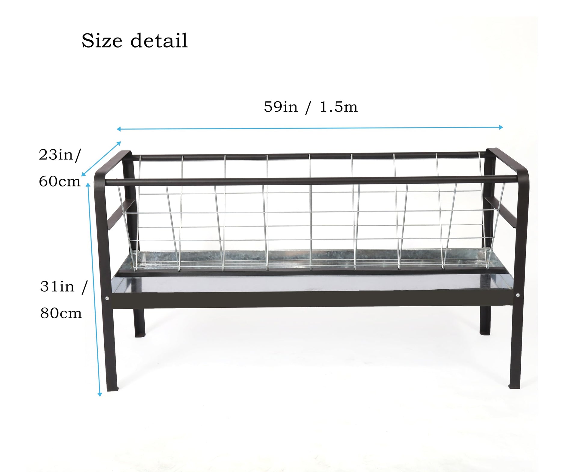 Goat Hay Feeder with Rack, Pasture Hay Grain Feeder for Goats, 59 in Long Outdoor Hay Rack Feeder 2 in 1 with All Steel Frame for Goat,Sheep, Horse, Small Livestock