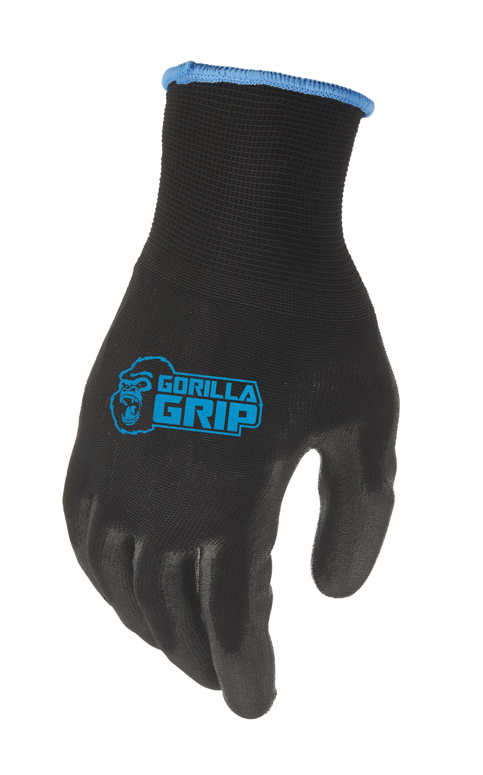 Gorilla Grip Work Gloves, Never Slip Maximum Grip All-Purpose, Gloves for Men, Superior in Wet, Dry, Oily Conditions, Polymer Palm, Large Size, 120 Pairs, Black/Blue| 19412AM