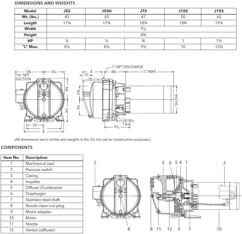 Goulds Pump J5S Shallow Well Jet Pump, 115/230 volt, 1/2 hp