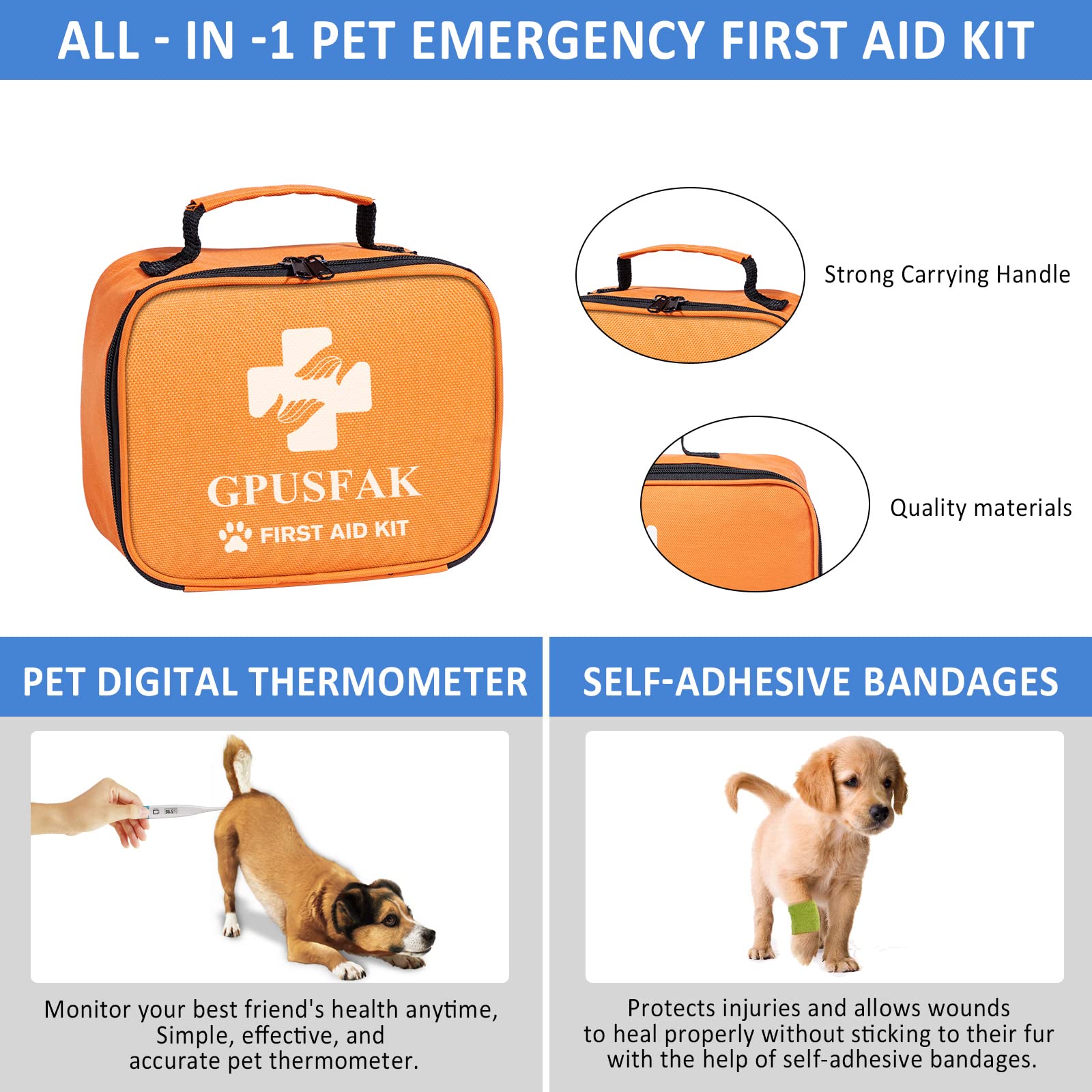GPUSFAK Dog First Aid Kit - Pet First Aid Kit for Dogs Pet Emergency Kit with Grooming Hammock Harness Nail Clipper First Aid Supplies for Home Camping