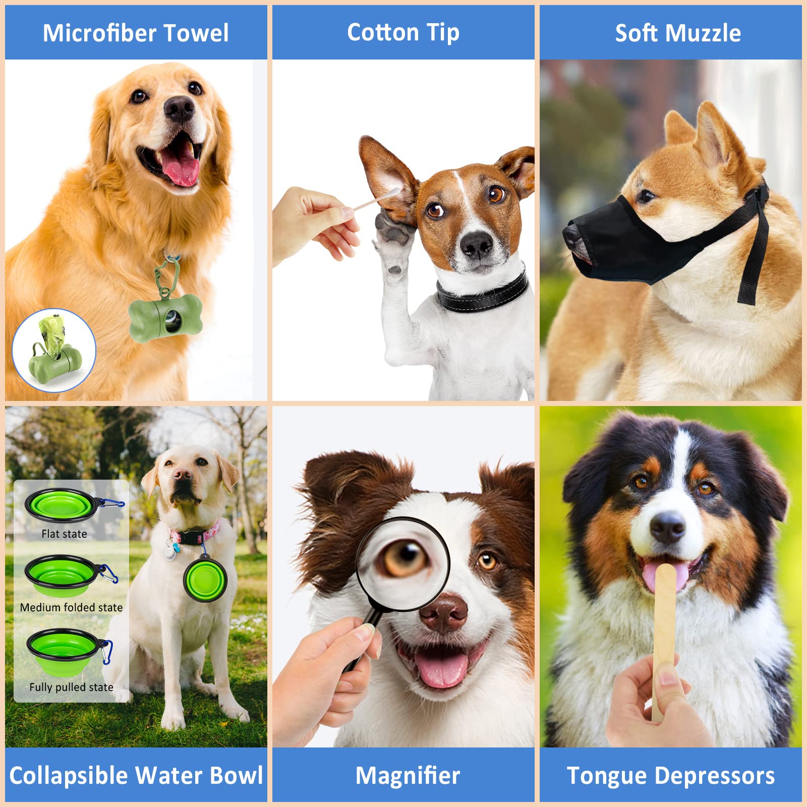 MEET YOUR BASIC NEEDS: With this kit, you can do the emergency care and daily pet care such as wound care and feeding medicine. In addition, we add 1 empty spray bottle, 1 small pill box, 1 collapsible water bowl and 1 trash bag in the package, you can also put what you need in it