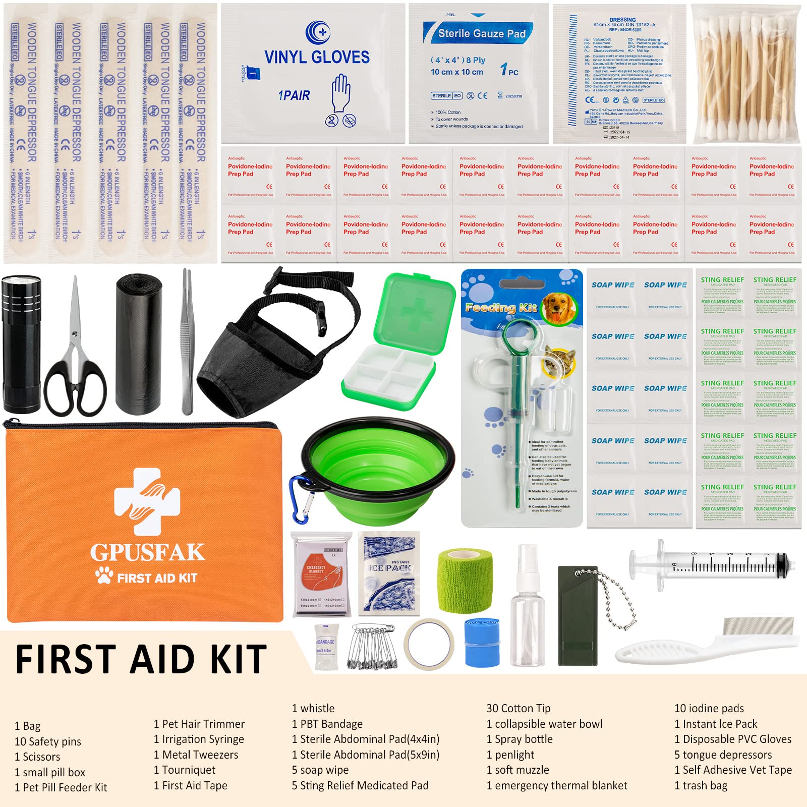 GPUSFAK Dog First Aid Kit - Pet First Aid Kit for Dogs Pet Emergency Kit with Pets First Aid Supplies for Home Camping Hiking Traveling