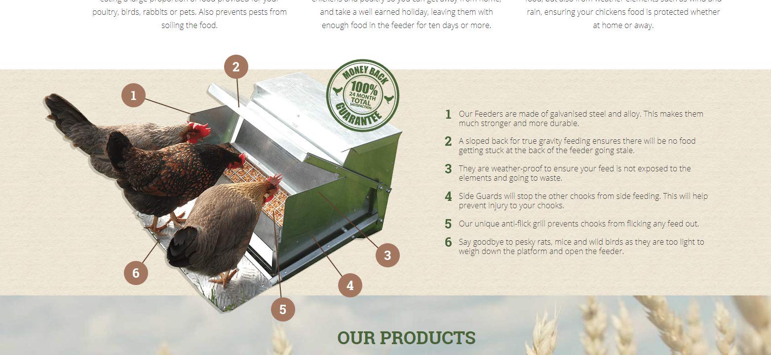 FEED ON DEMAND - Grandpas Feeders provide Feed on Demand for your flock. At the same time, this treadle chicken feeder also provide a protected way of feeding your backyard chickens on demand, allowing them to access their food when hungry, ensuring optimal laying and happy chickens. Grandpas Feeders also allow a number of chickens to eat at once.