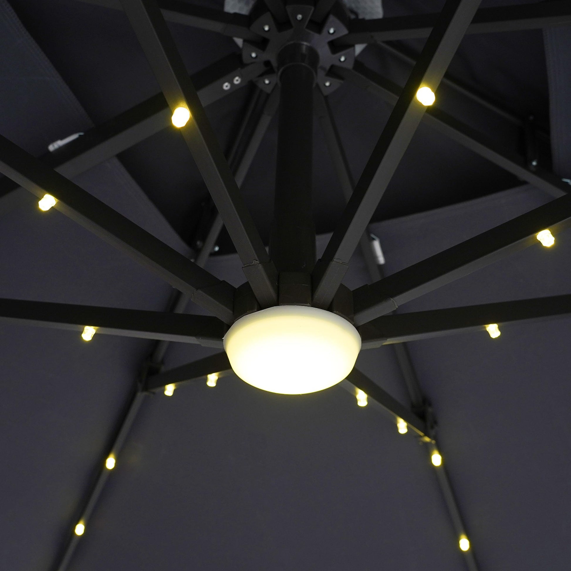 Equipped with integrated solar panel and LED lights, this umbrella provides eco-friendly illumination for outdoor gatherings and relaxation, powered by the sun's energy.