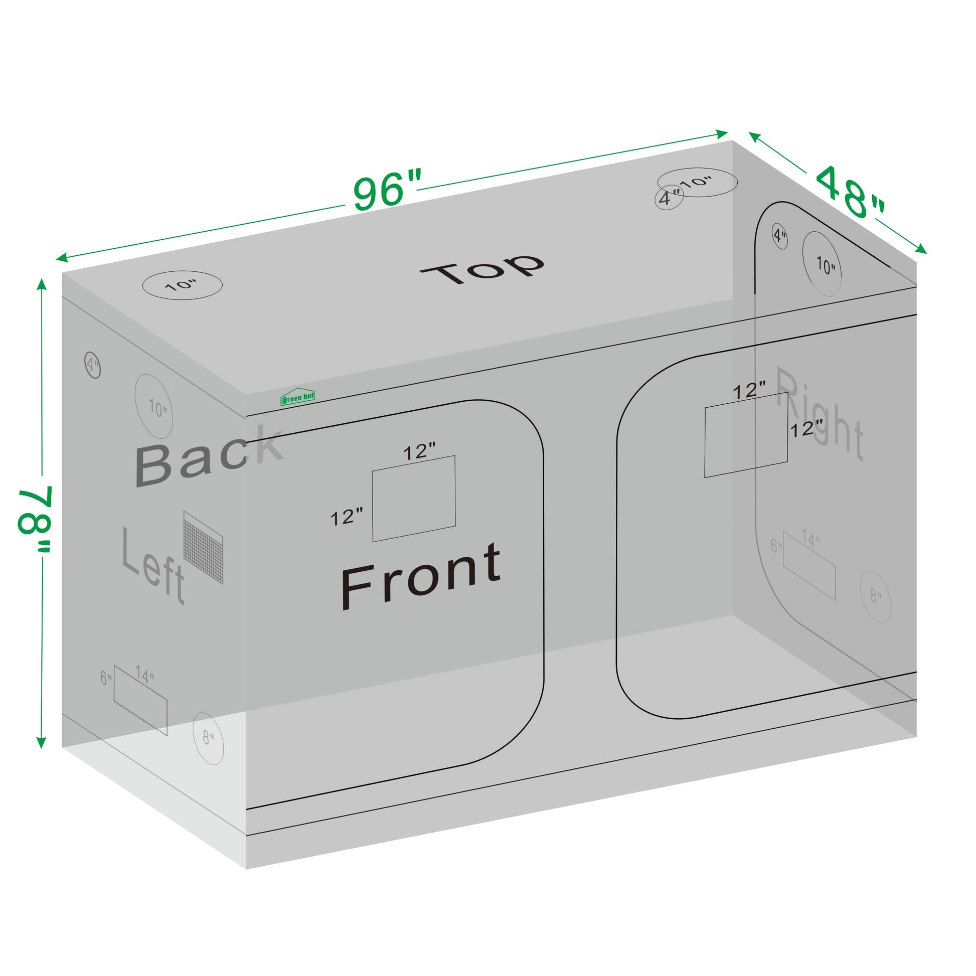Green hut Grow Tent 96"x48"x78" 600D Mylar Hydroponic Indoor Grow Tent with Observation Window, Removable Floor Tray and Tool Bag for Indoor Plant Growing 8x4