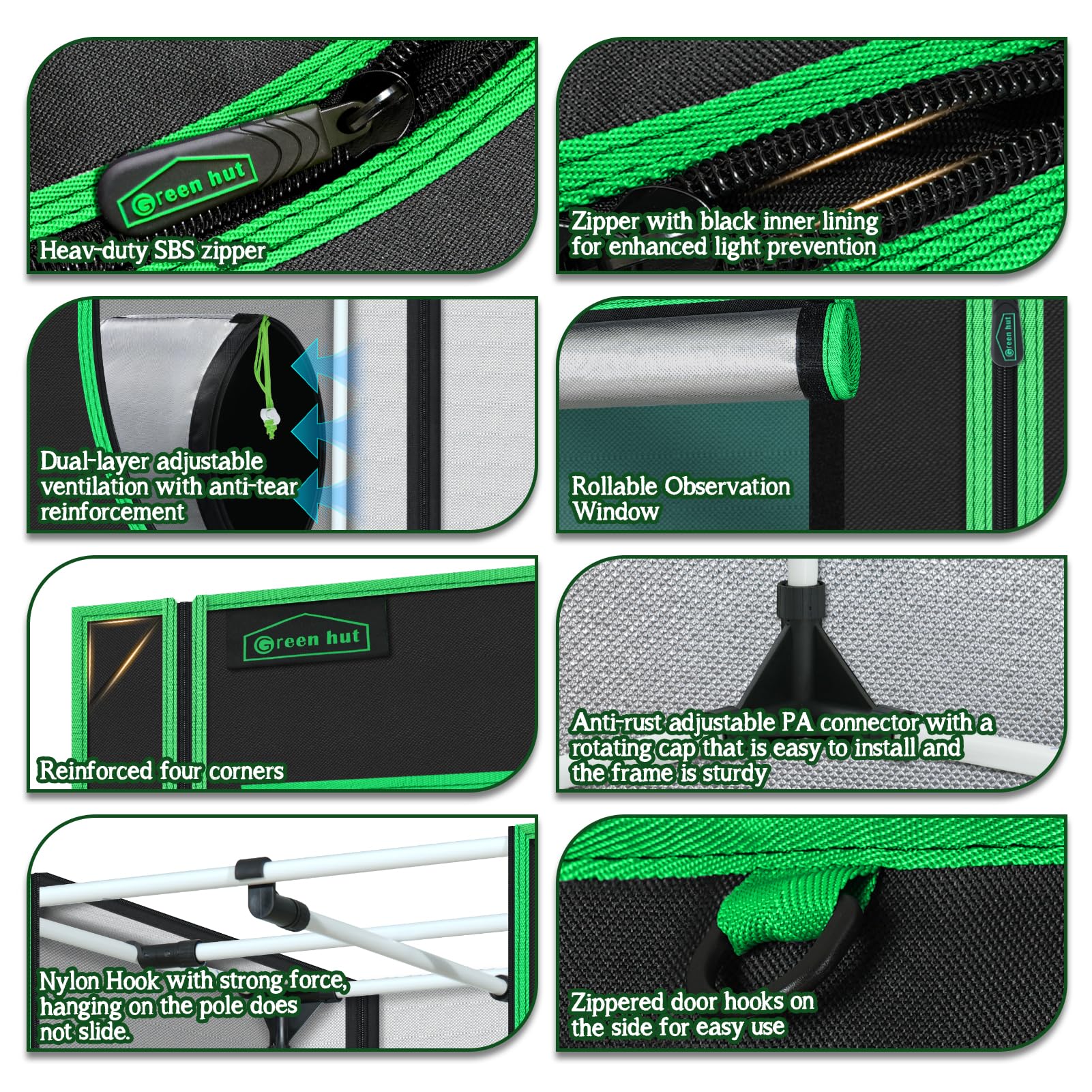 LIGHT PROOF — The large heavy duty Zippers & 1.5" ribbon protect the tent from light leaking and ensure durability and long-lasting use. Let you control the climate and lighting so you can grow any plant in any place safely and easily