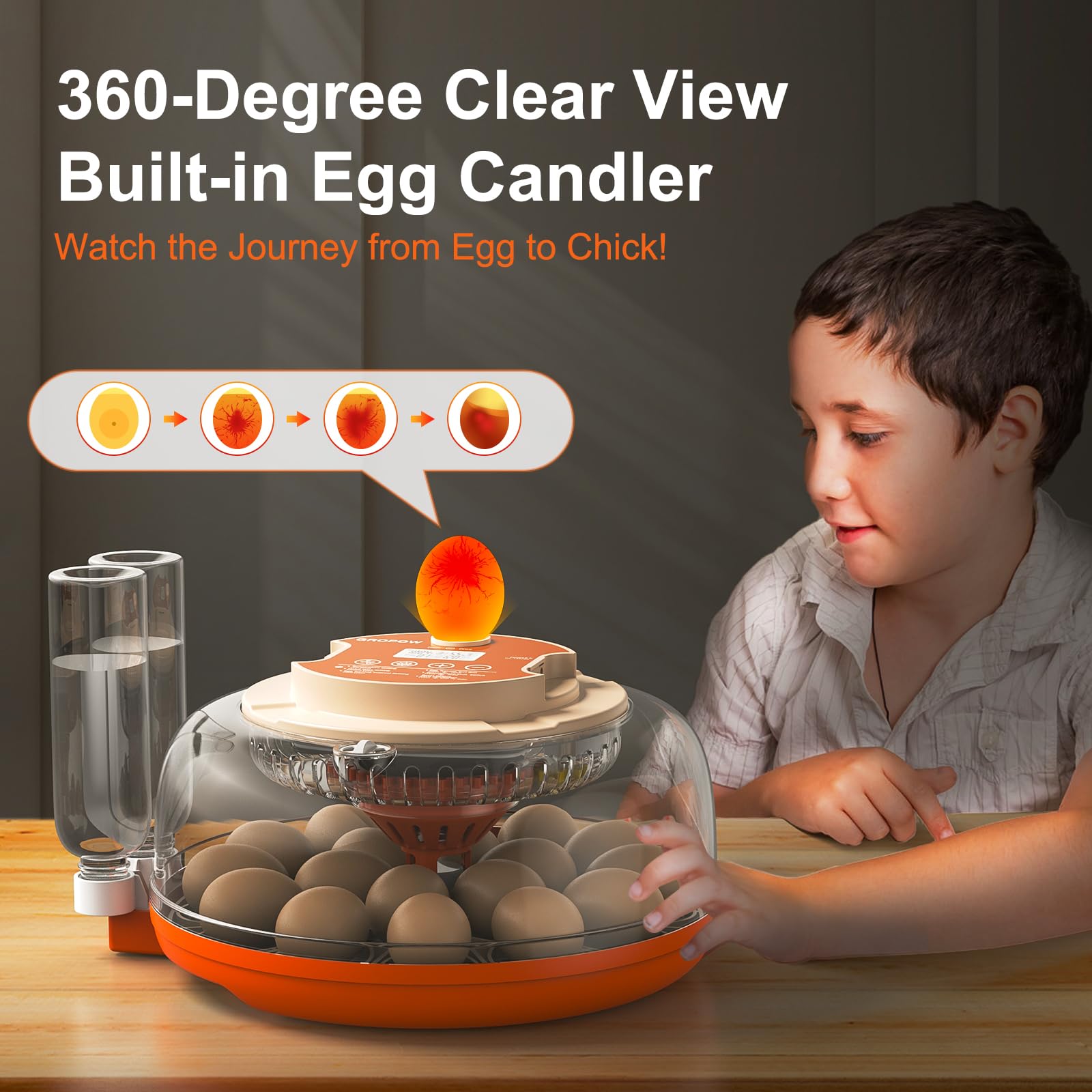 BUILT-IN EGG CANDLER: Effortlessly observe embryo development without buying extra tools. The integrated egg candler shines through the shell, clearly revealing embryos. Simply place the egg in the candler area and press the button—no guesswork, no hassle.