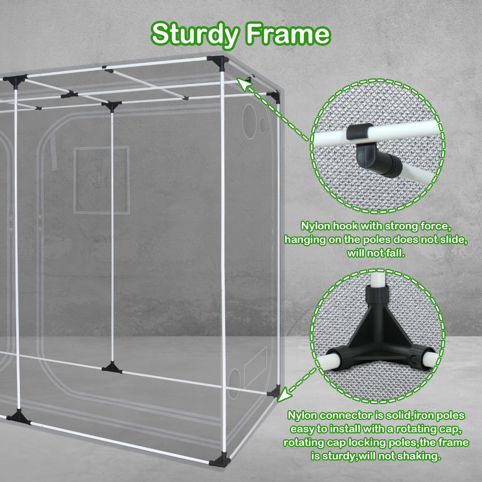 Superior Materials and Sturdy Structure---- The grow tent is made of tear proof 600D canvas and double stitched to ensures the light blocking. Strong metal poles and solid PA corner connectors that will uphold your grow tent's frame and lock your structure securely in place. Ensure stable and heavy duty enough for durable & safety use.