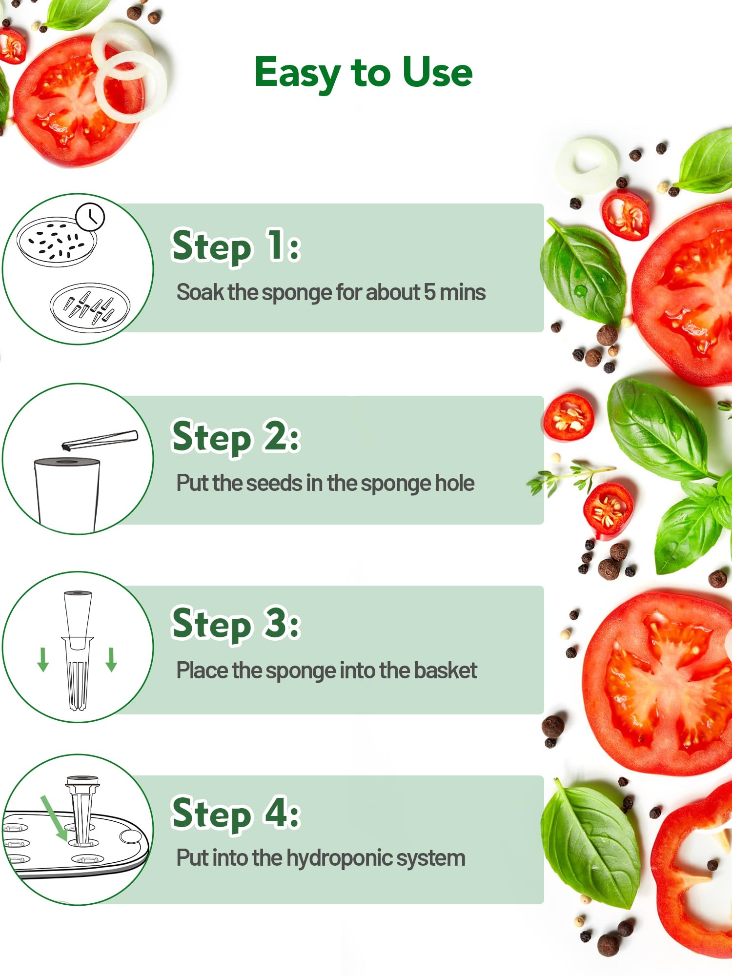 • 【Easy to Use】 Before use, soak the sponge for about 5 minutes and then place the seeds inside. Please store all unused replacement growing sponges in a dry place.