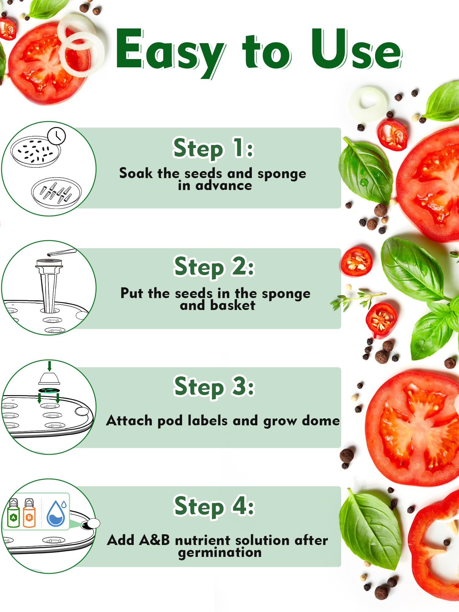 • 【Meet All Hydroponics Needs】Fulfill all your hydroponic needs effortlessly with the Growell Hydroponics Pod Kit. This comprehensive package comprises 60 grow sponges, 30 grow baskets, A+B plant foods, 30 grow domes, and 60 pod labels—providing everything necessary for year-round hydroponic gardening at home. (Note: No Seeds Included)