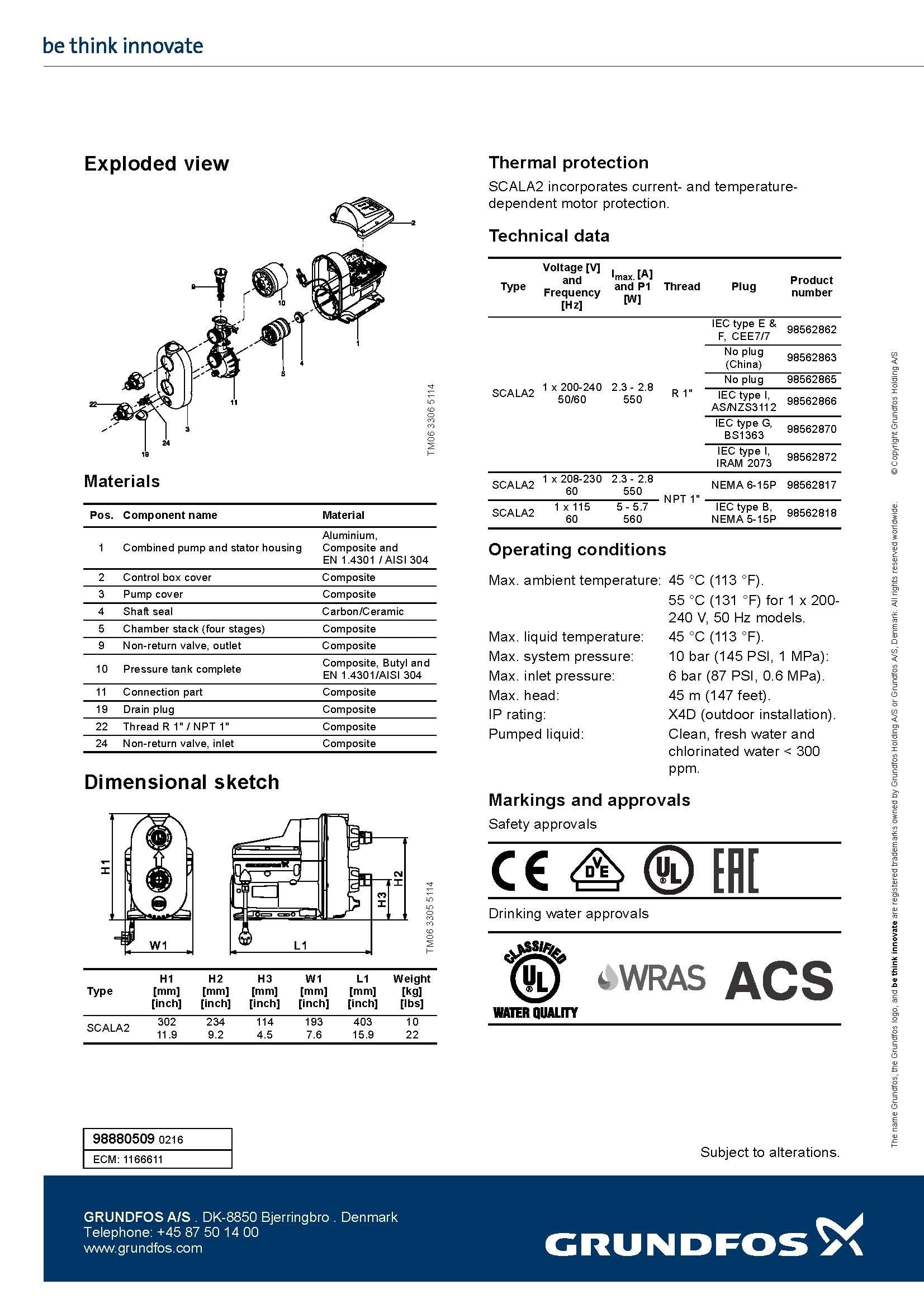 Grundfos 98562818 SCALA2 3-45 AVCBDF 1x115V 60Hz Pressure Boosting Pump