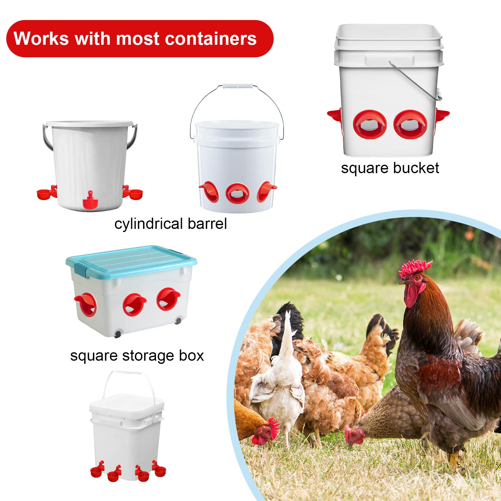 【Automatic Chicken Waterer】Chicken water bowls The gravity-feed poultry watering system make sure the cups will always be full, No more hanging waterer and no more daily water bucket cleaning,and compatible with most containers.