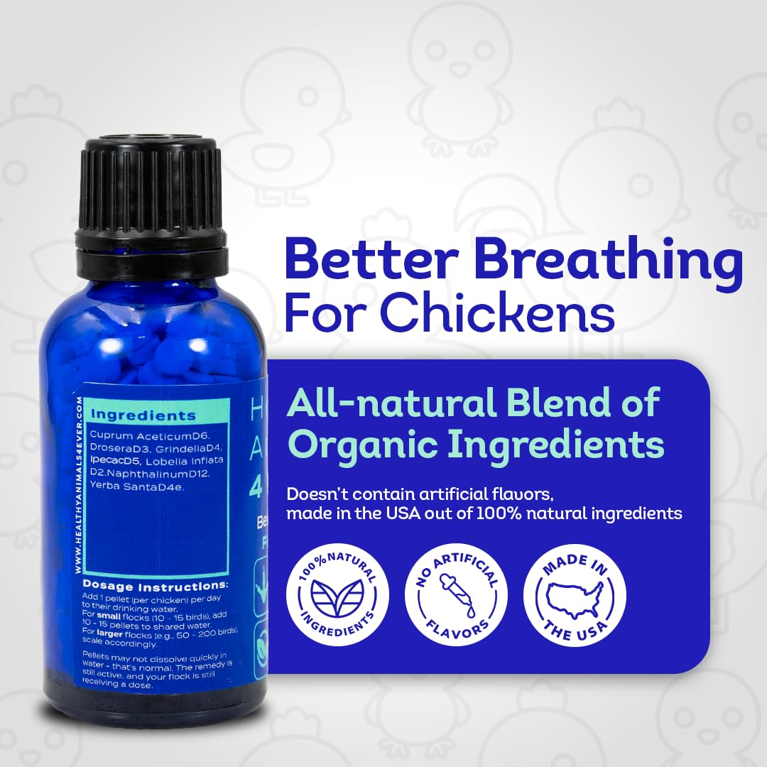 SAFE SUPPLEMENT FOR ALL CHICKENS: Promote sustained respiratory health for your chickens naturally with our gentle, all-natural homeopathic remedy, free from antibiotics, harsh chemicals, and harmful side effects. It's non-GMO, organic, and safe for all chickens, as a standalone treatment or alongside other medical interventions.