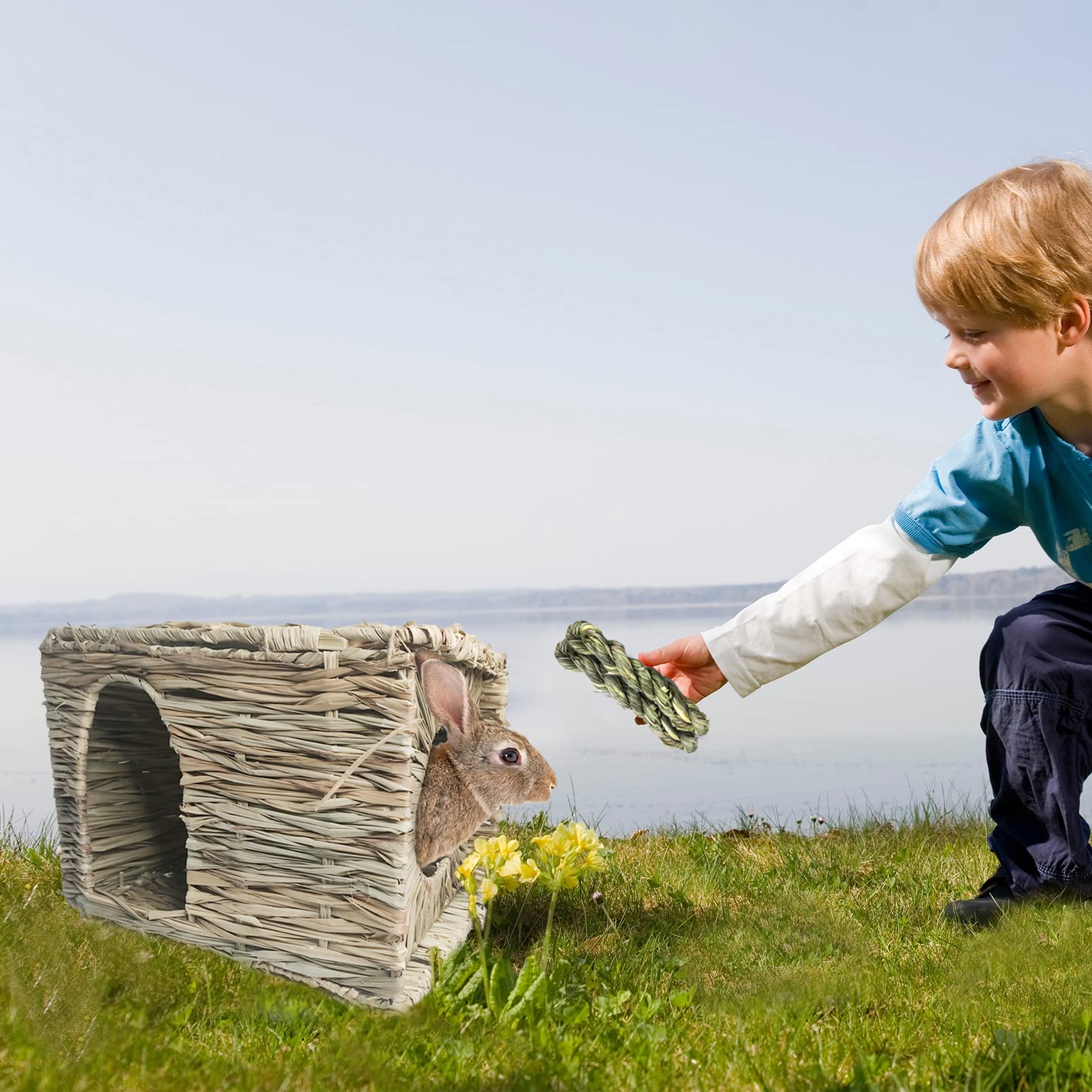 Overlooking the Window : The design of the grass house for rabbits window allows rabbit to look at the outside world and have a sweet dream while resting. It will also hold out its head and wait for your feed, so be prepared to record this wonderful time with your camera