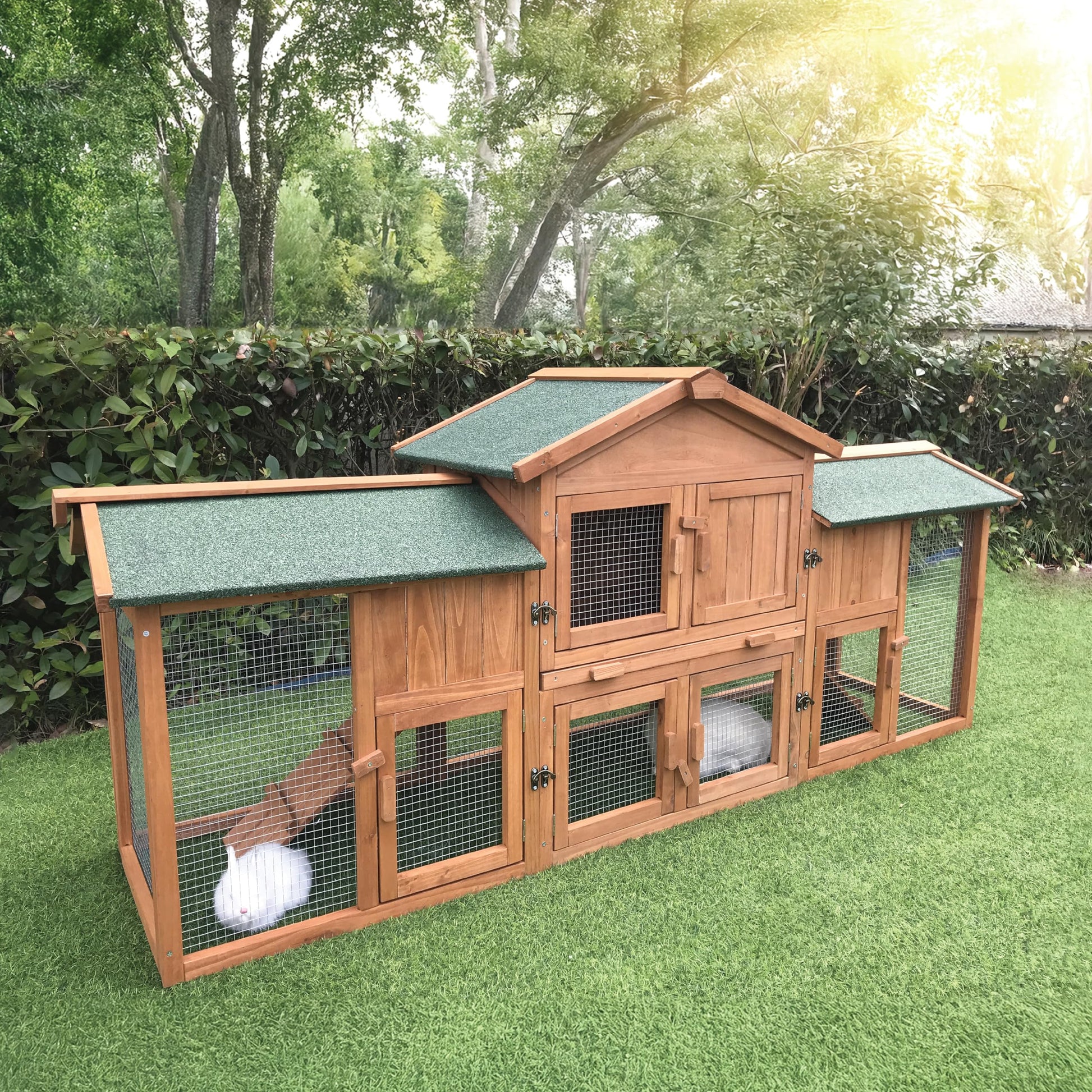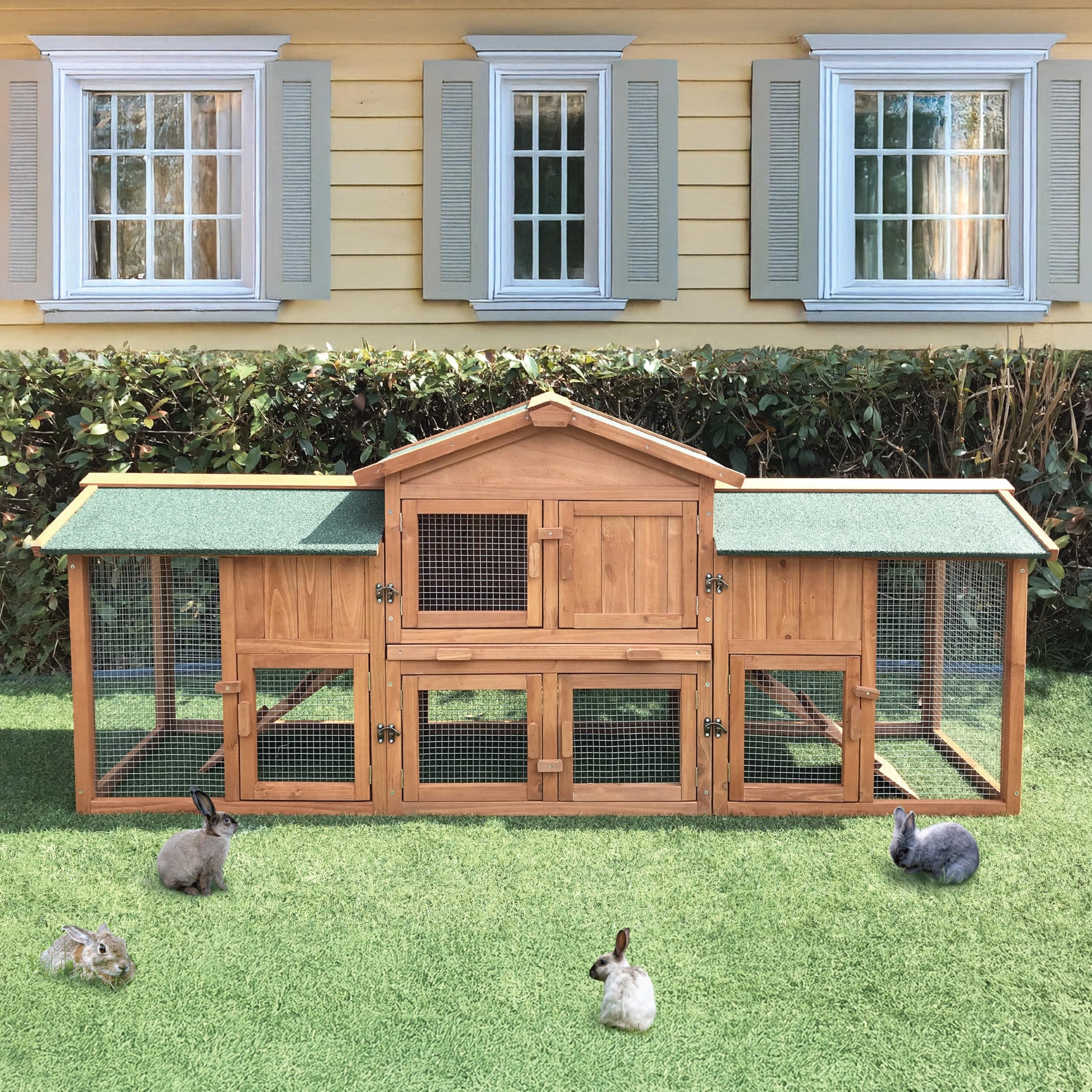 Easy to Clean & Safe: As far as cleaning goes, that's made easy thanks to a built-in slide out tray and 5 entry doors which offers access to the rabbit cage; Your pets will enjoy fresh air and sunlight as the ventilated wire mesh protect against predators