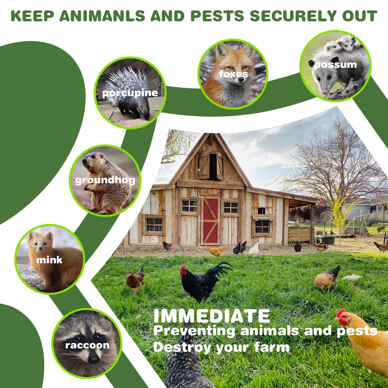 Wide range of uses - mesh and wire cloth are suitable for chicken pens/cage enclosures, snake fences, possum rehabilitation cages, chicken coops, rabbit enclosures, poultry enclosures, flower beds, wide drainage ditch guards, fruit trees, vegetable gardens, repelling voles, cockroaches, raccoons and other animals.