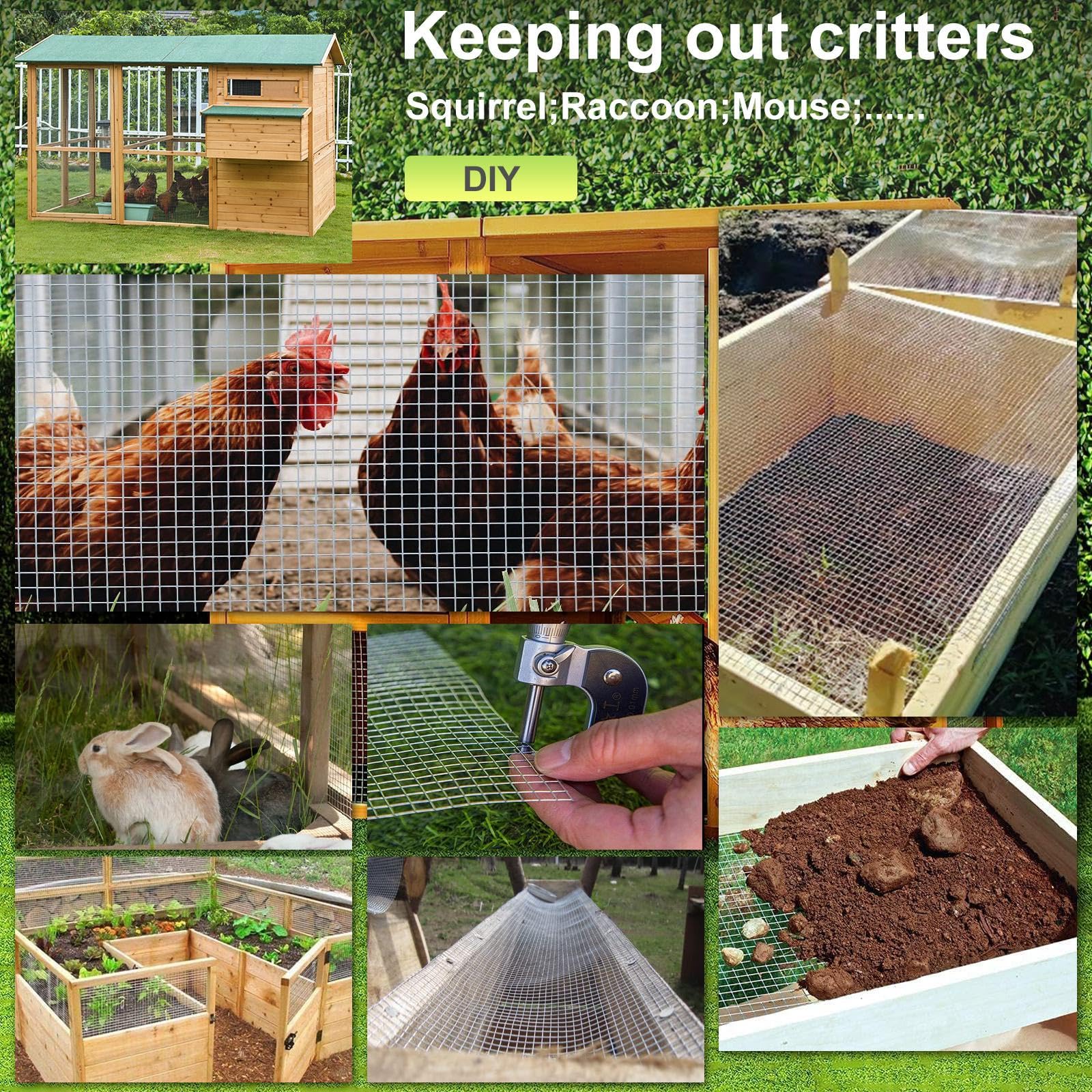 【 Hardware Cloth Wide range of applications】:Chicken Wire Fence Roll Hardware mesh is suitable for chicken pen/coop fences, raised garden beds, screens, rabbit/snake fences, tree guards, gutters, under eaves, soil screens, gutter guards, flower beds, poultry fences, home decor projects, craft making, etc. to keep out small critters such as voles, gophors, racoons,etc