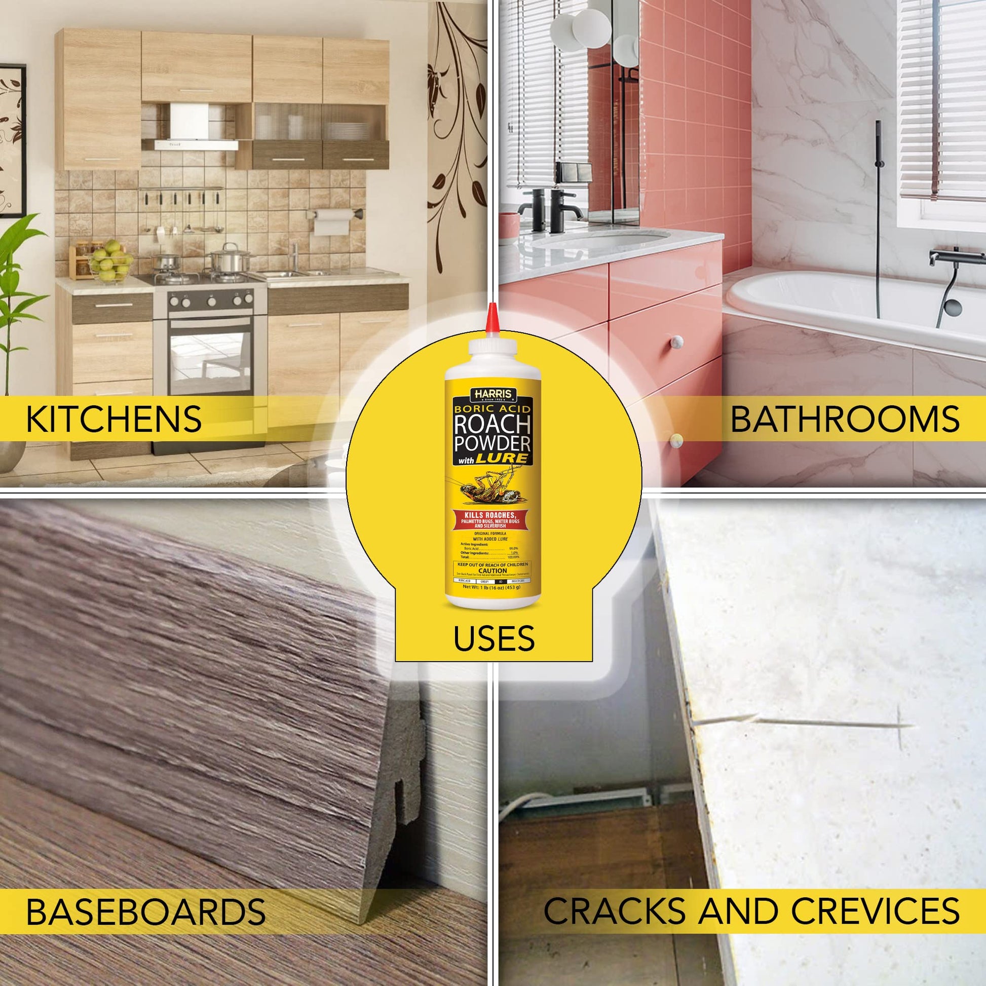 HARRIS Boric Acid Roach and Silverfish Killer Powder w/Lure for Insects (16oz)
