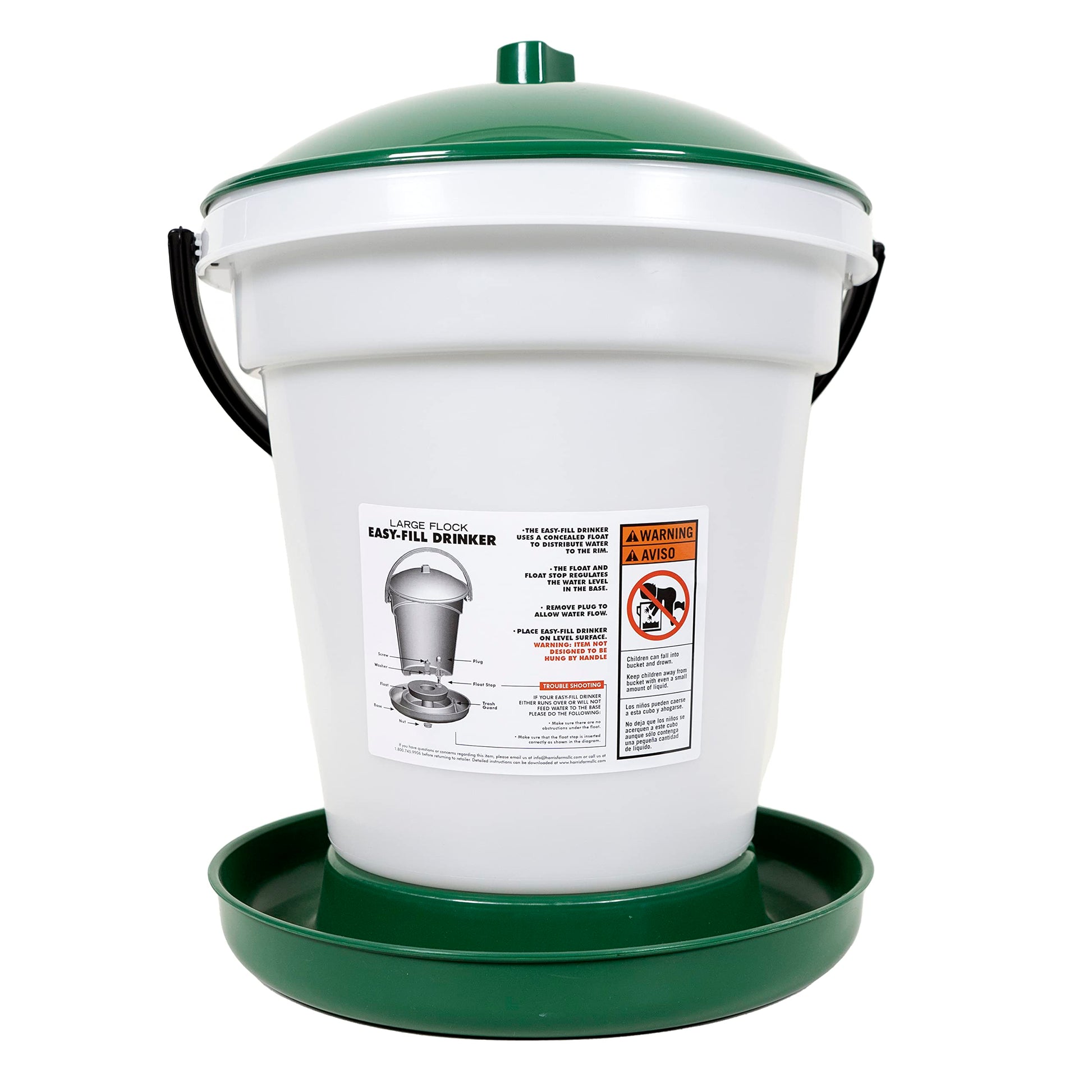 Harris Farms Large Flock Easy-Fill Poultry Drinker, Made with BPA-Free Plastic, Top Fill Design, 6.25 Gallon