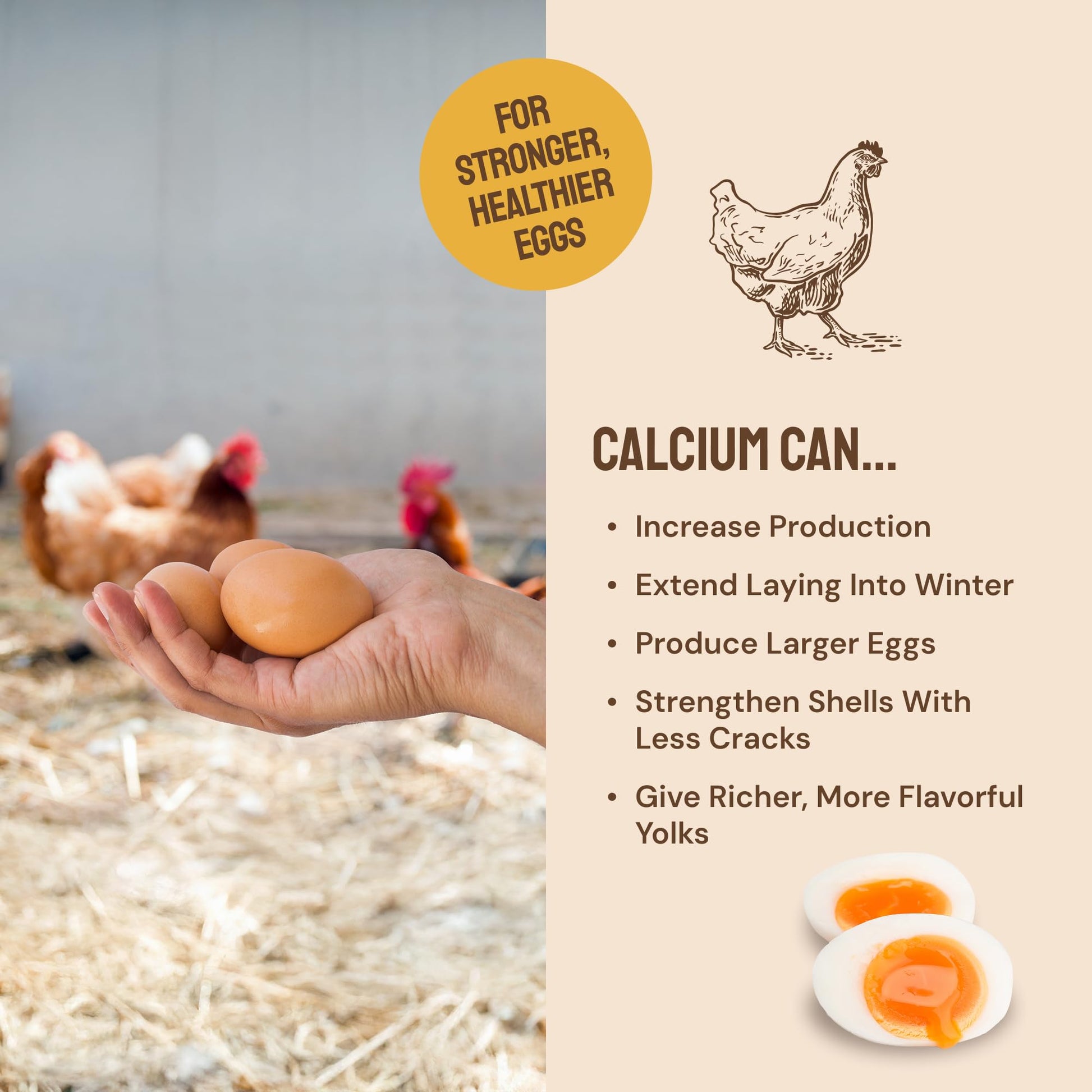 Healthier Flock for Tastier Eggs: The nutritional content in our chicken food for laying hens benefits both your flock & their eggs. With ingredients known to promote muscle growth & bone health, as well as stronger eggs, produced over longer periods