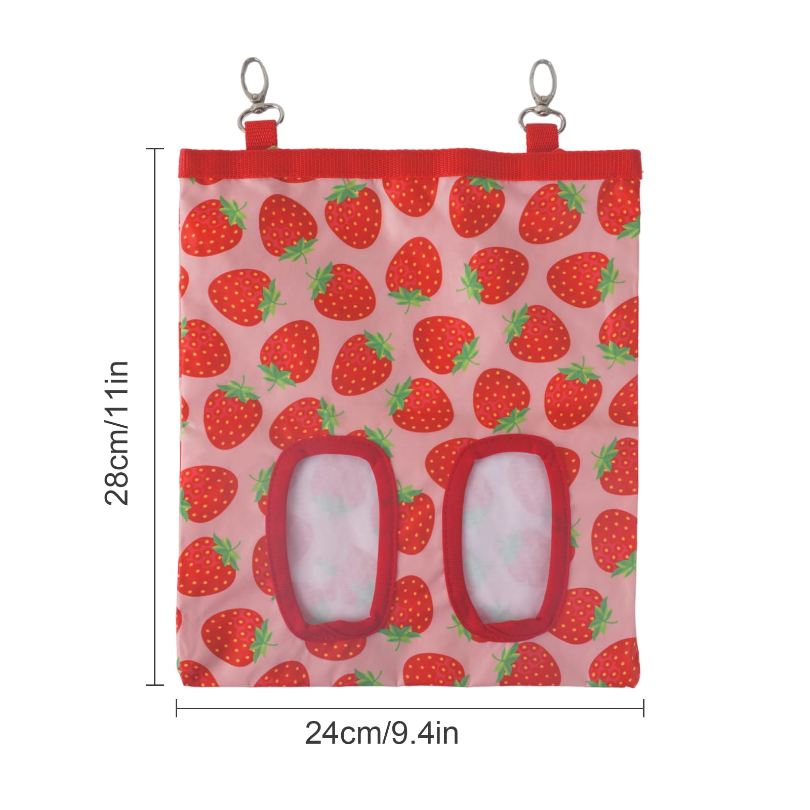 Hay Bag for Rabbits,9.8 X 11.4 Inch Guinea Pig Bunny Hay Feeder,2 Hole Guinea Pig Rabbit Feeder for Rabbit,Forage Sack for Chinchillas and Other Small Pets (Red)
