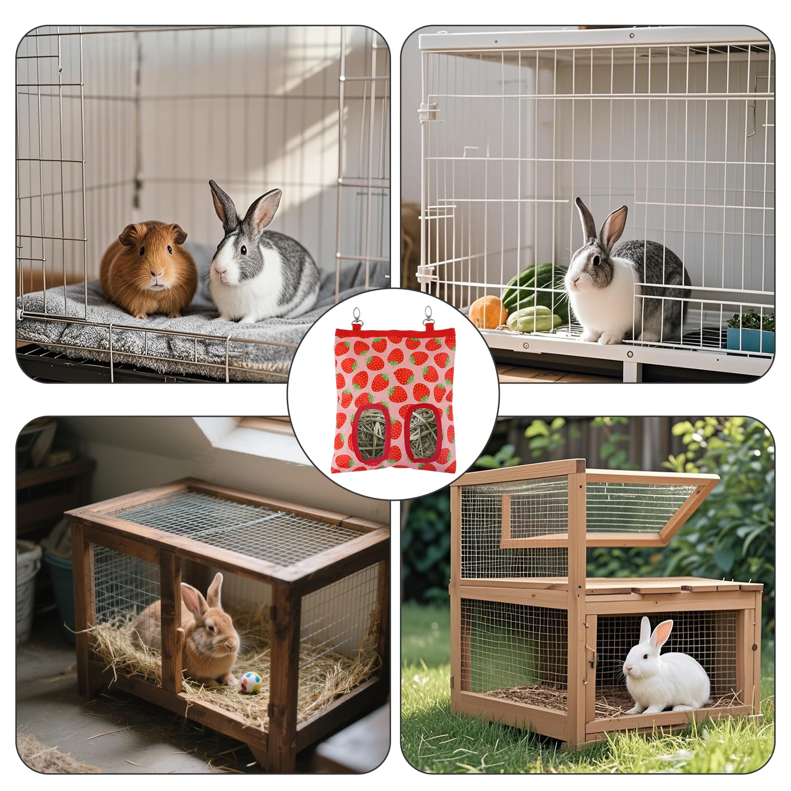 【Easy to Use】Open the rabbit hay bag Velcro, add hay, tightly close the Velcro and fix the hook, simple installation is complete, if the hay is insufficient to replenish, open the Velcro to add hay the hay bag for guinea pigs for guinea pigs can be reused