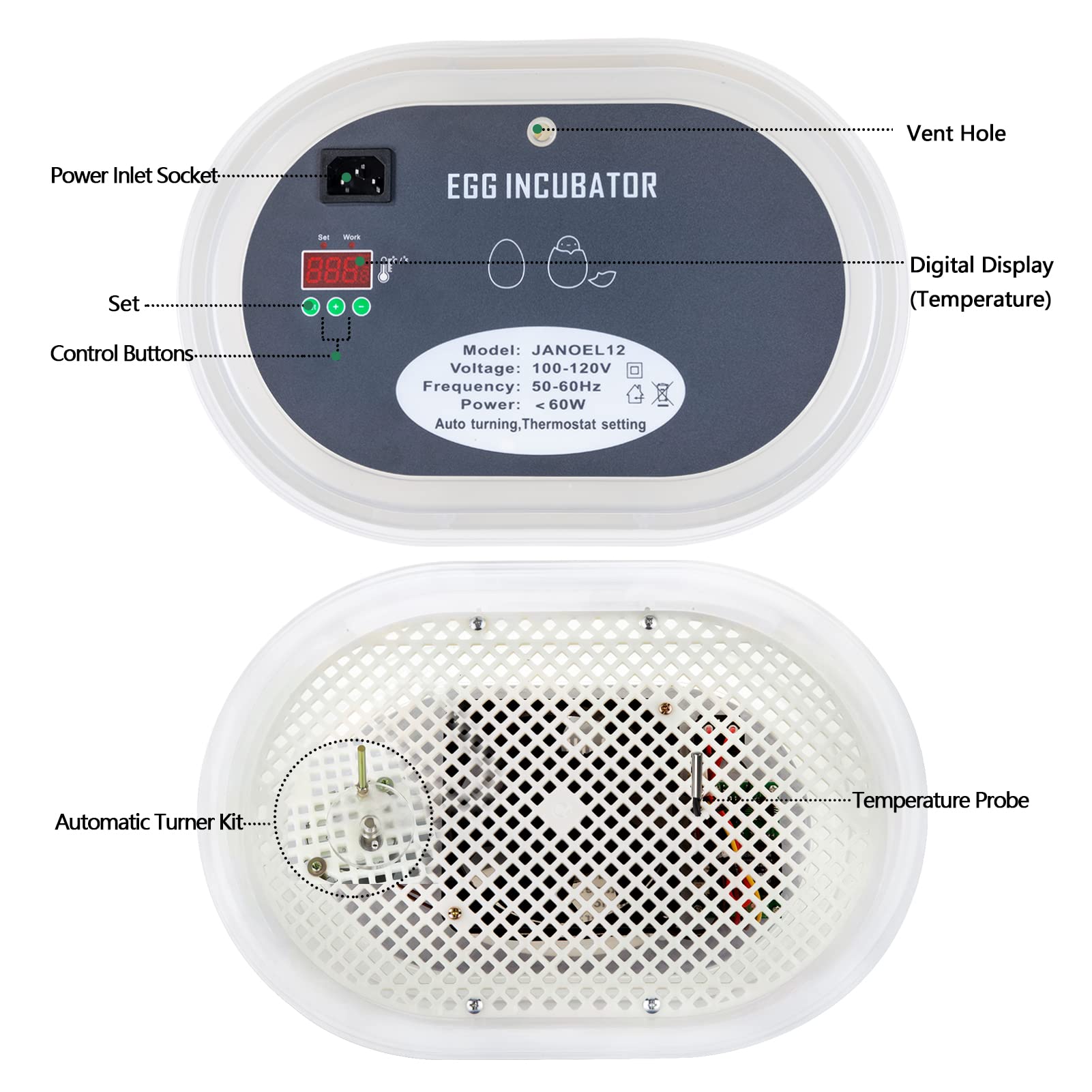 AMAZING EXPERIENCE: You can show the kids how chickens are born, by the chicks breaking shell and hatch fully, also a quick biology lesson for children. Fitting 9-12 chicken eggs according to the normal size, It can also hatch quails, ducks, turkeys, birds, parrots, reptile and geese.