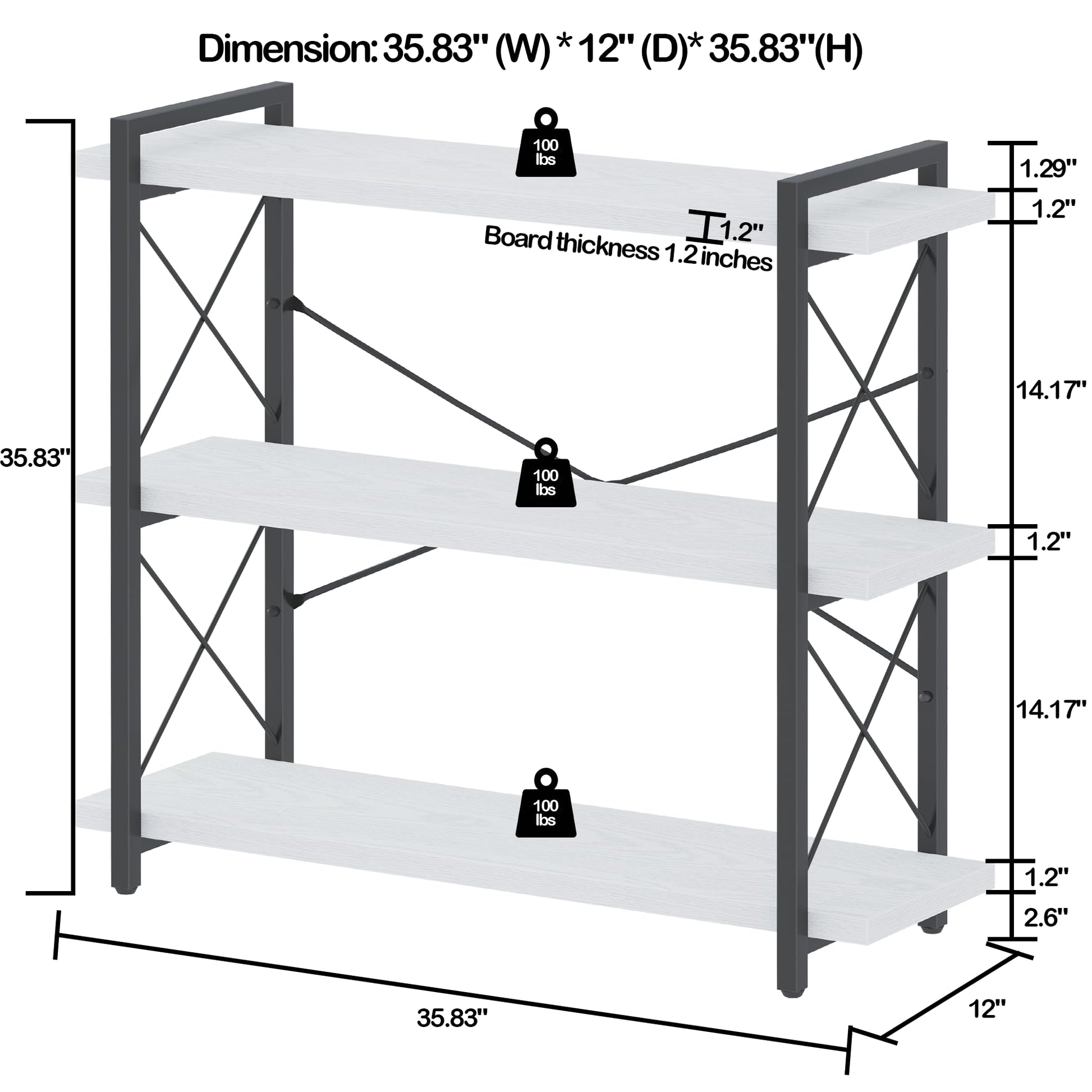 Dimensions: 38.5 inch wide, 12 inch deep, 35.8 inch height. The height between bookshelves is 14.17 inches, so you can organize your photo albums, home and office decor, wine, books, food, and more