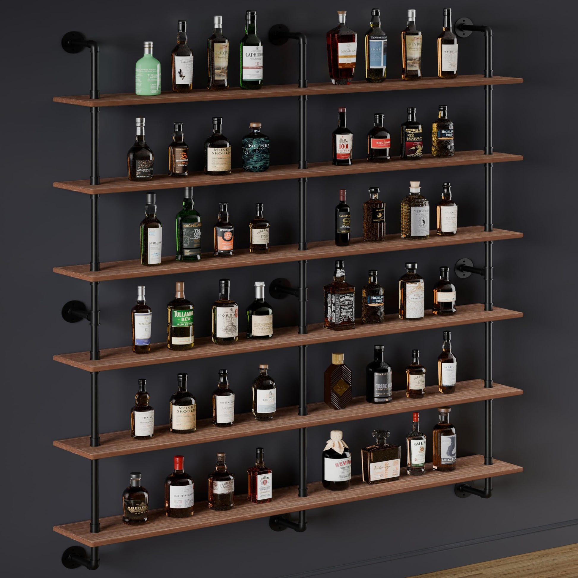 【Black metal pipe and solid wood 】Good rustic look solid wood industrial Pipe shelf with black metal pipes.The tubing is all metal and has a very rustic finish and the wood is a solid piece. This industrial pipe shelving is very very stable and solid on the wall,Fits right in with Your farmhouse vibe.