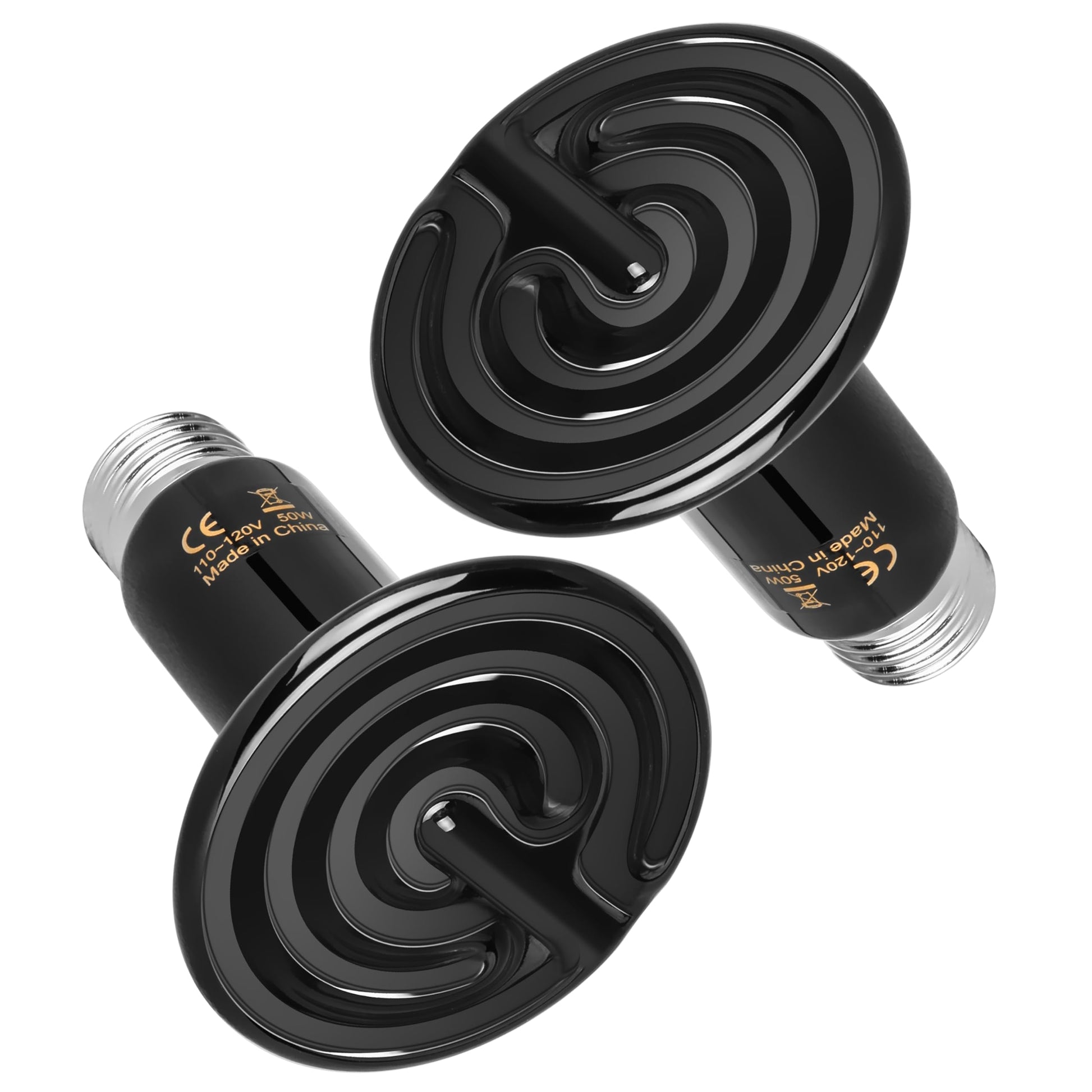 Detailed Specifications: Includes 2 pack 50W 110 V-120 V heat bulbs compatible with E26 lamp bases. Dimensions: 75mm x 100mm
