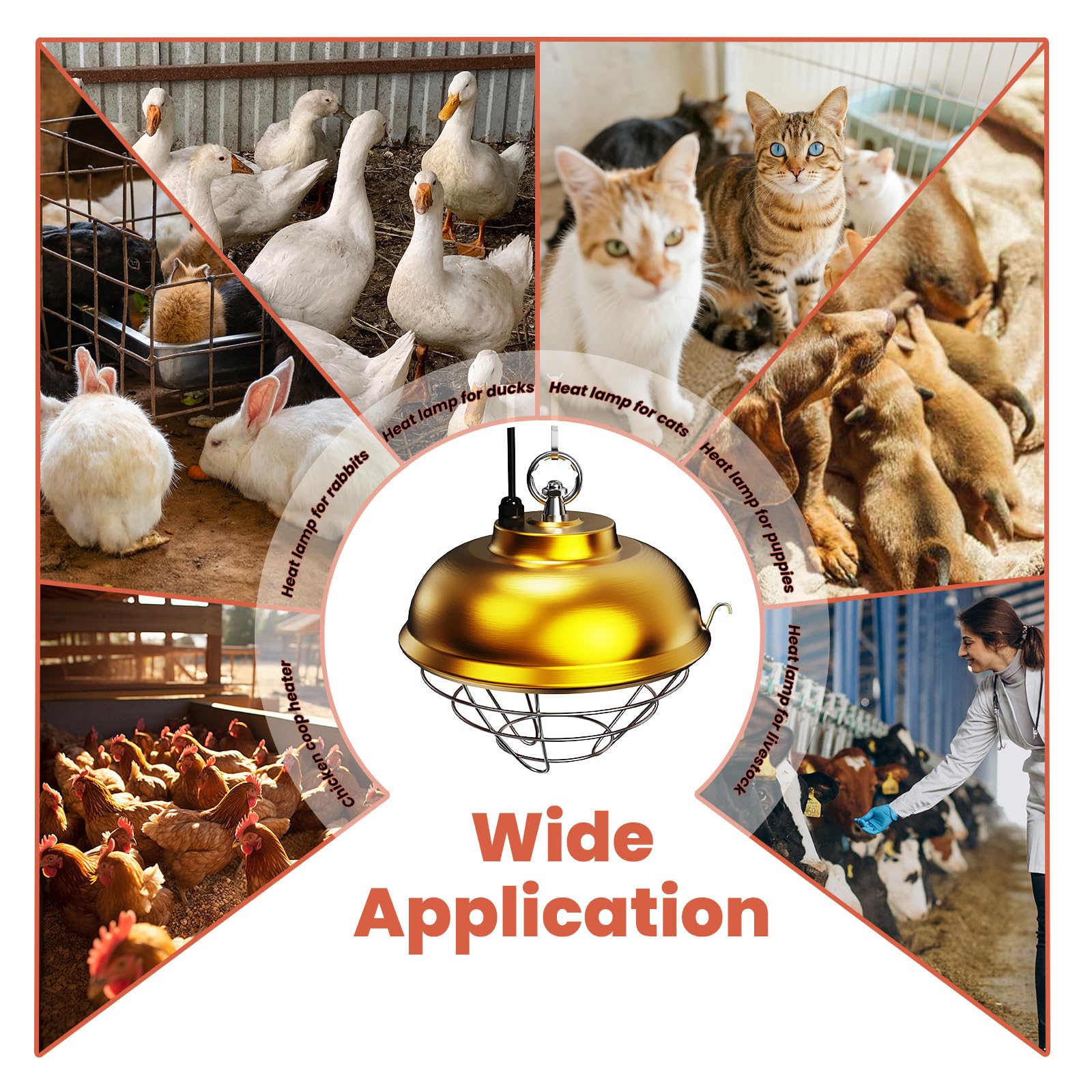 Multi-Purpose Heating Lamp: More than a chicken coop heat lamp, this versatile heat lamp also works for rabbits, dogs, cats, and livestocks. A practical chicken brooder heater lamp and heater for hen house in colder months