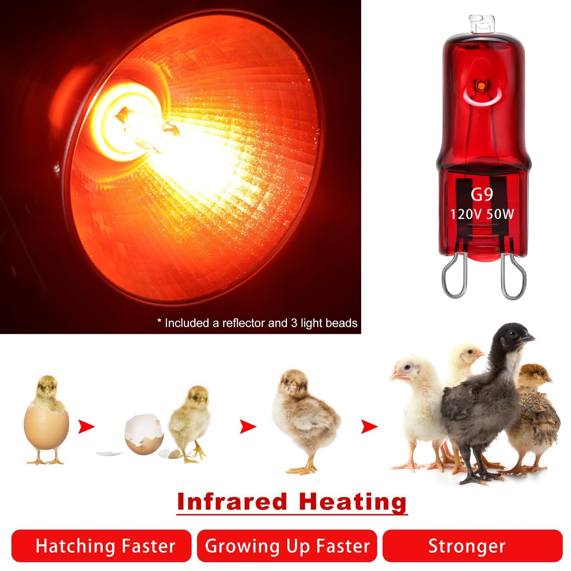 【Give the Heat Your Chickens Need】The small heat lamp for chicks delivers reliable warmth for poultry brooders, chicks, chickens, ducks, parrots, and cockatiels. The chicken coop heater engineered for cold environments, its powerful heating performance quickly warms enclosures, ensuring your baby chicks stay cozy even during nighttime hours.