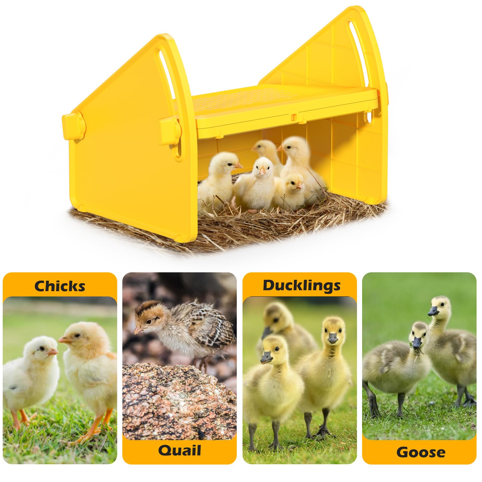 Safety-First Design + Energy Efficient: Safer than heat lamps! Our enclosed house structure prevents burns and reduces fire risks. The elevated heating plate (never for standing) keeps chicks warm from above—just like a mother hen. Saves 30%+ energy vs. traditional heat bulbs!