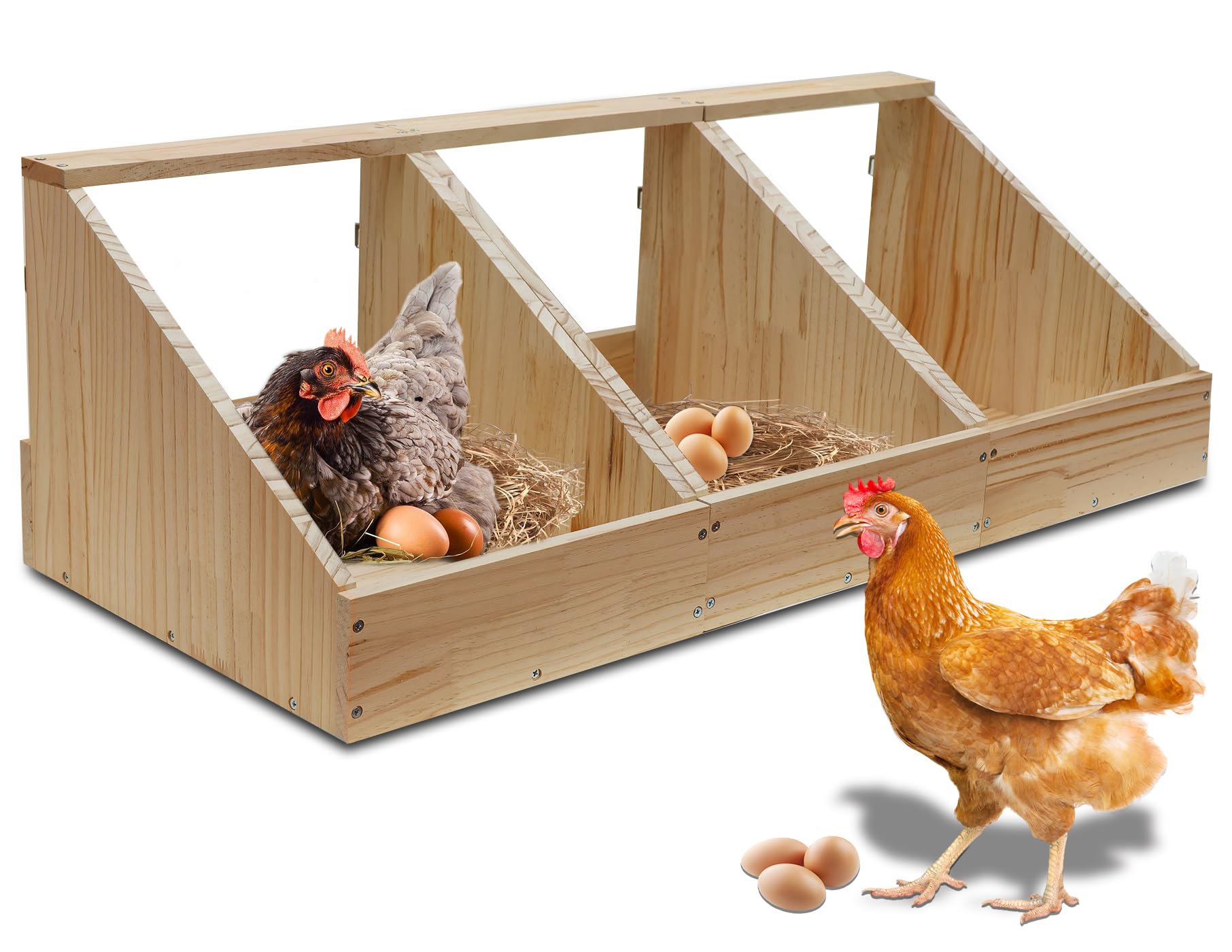 3 Independent Chicken Nest: Each of our hens nesting box is separate. You can place them in different areas or merge them together, compared others wood chicken nest box in market, its more freely!