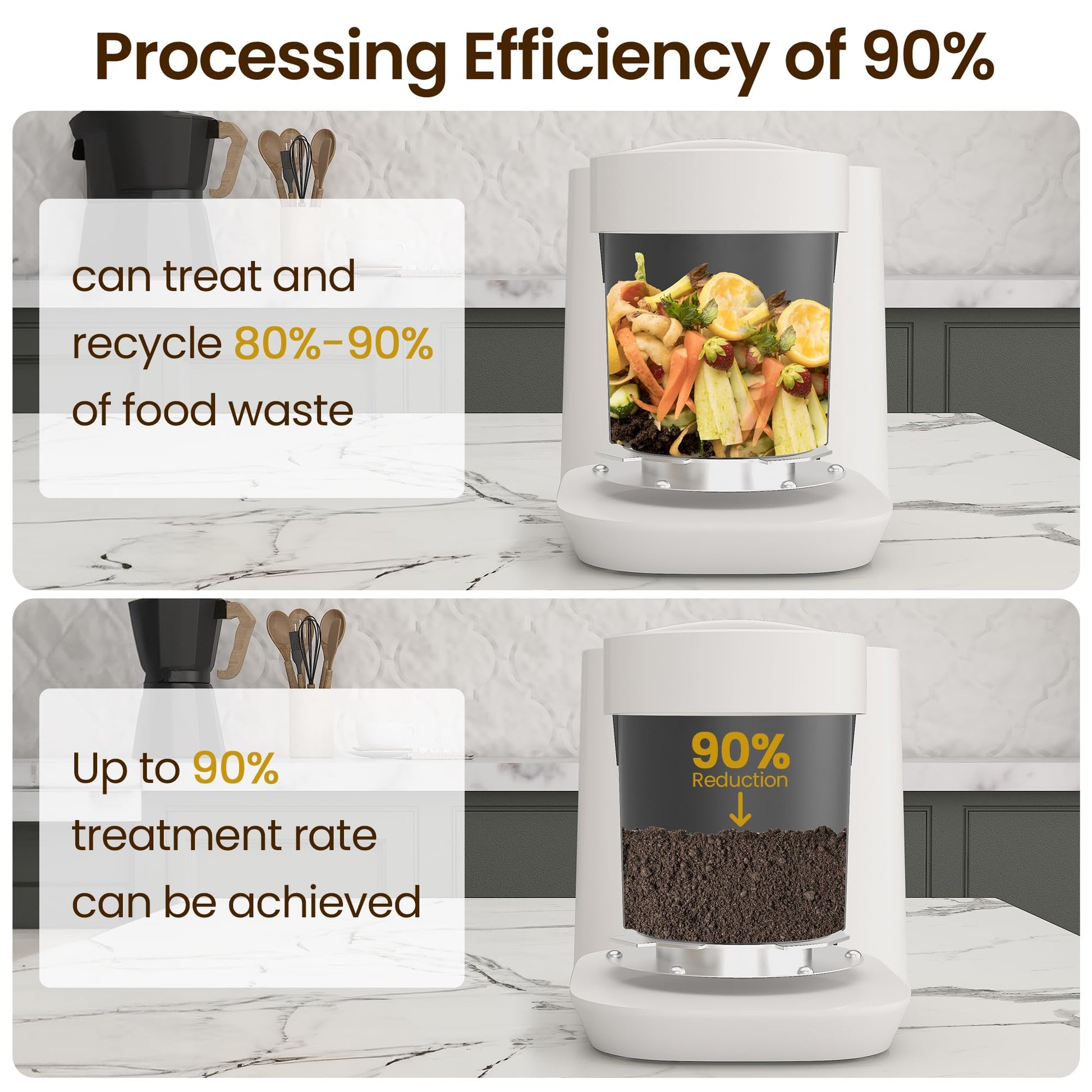 3 Selectable Modes: Designed to meet all your composting needs, this smart compost bin offers 3 specialized modes: Pet food in 1 hour, Kitchen waste in 3 to 7.5 hours, and Grass in 12-17 hours. It can reduce your waste volume by 80%-90%, turning scraps into nutrient-rich compost.