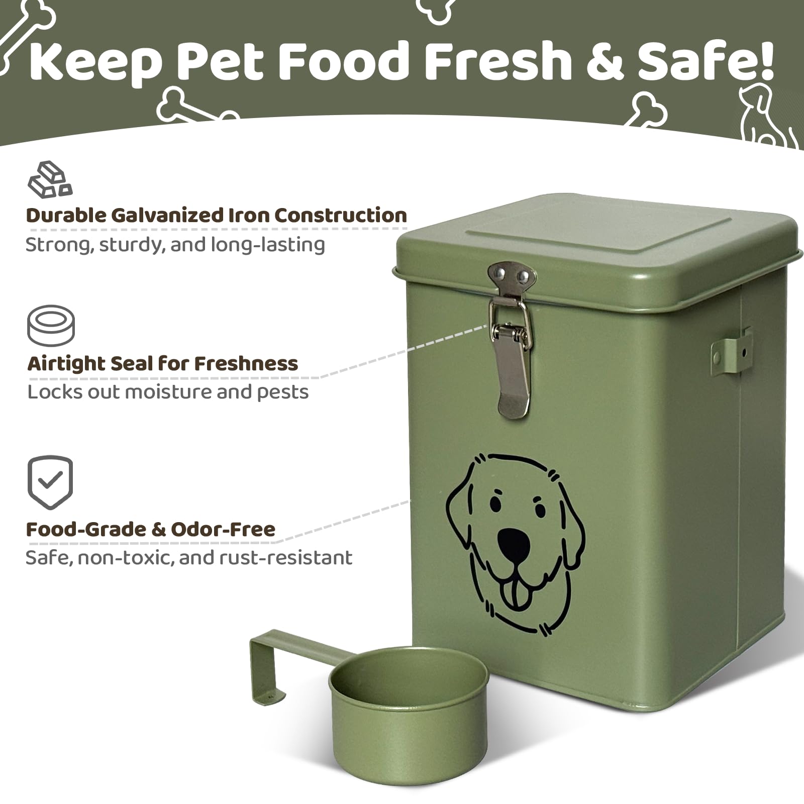 Durable & Airtight Dog Treat Storage: Crafted from galvanized iron, the dog treat jar is moisture-resistant, sturdy, and built to last. Its food-safe, odor-free design keeps every meal fresh and protected, ensuring a reliable storage solution for your furry companion’s daily nutrition