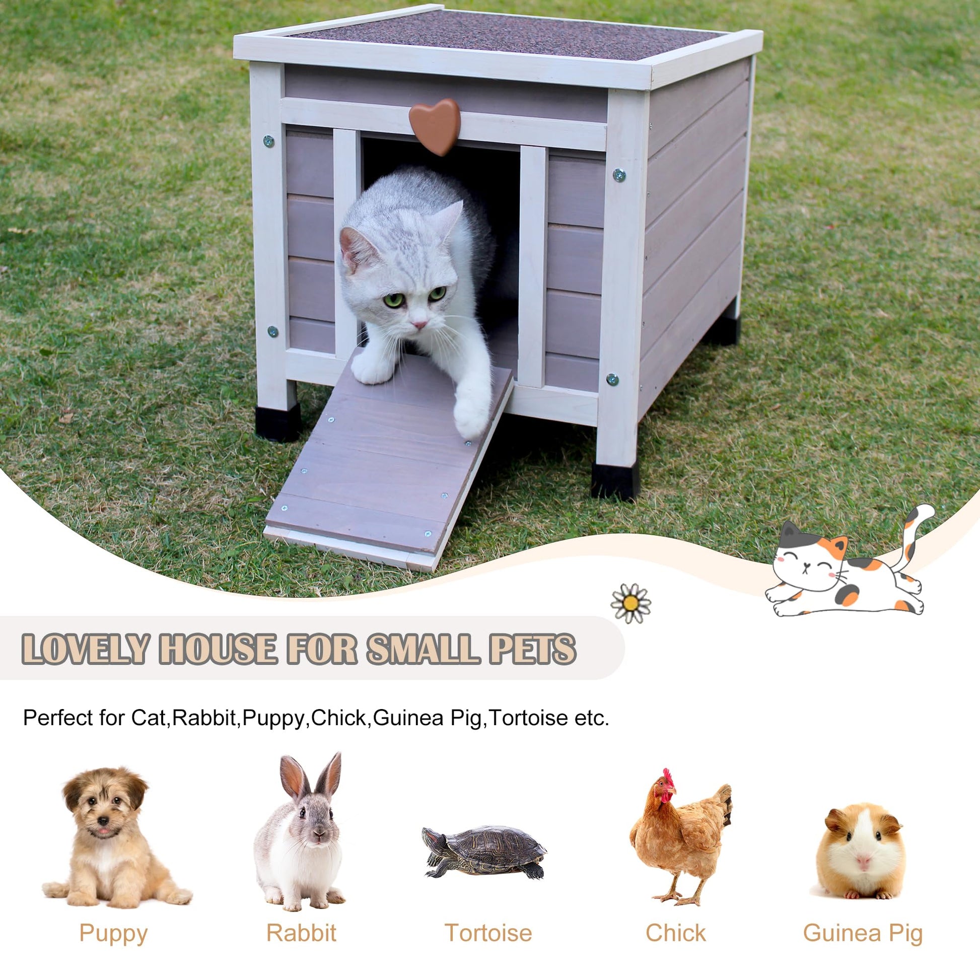 Sweet Cabin for Small Animals: The small pet house size is 16.5"L * 20"W * 17"H, internal size is 15"L * 18"W * 10"H, It is the perfect outdoor small pet shelter for cats, rabbits, guinea pigs, hedgehogs, ducks, etc