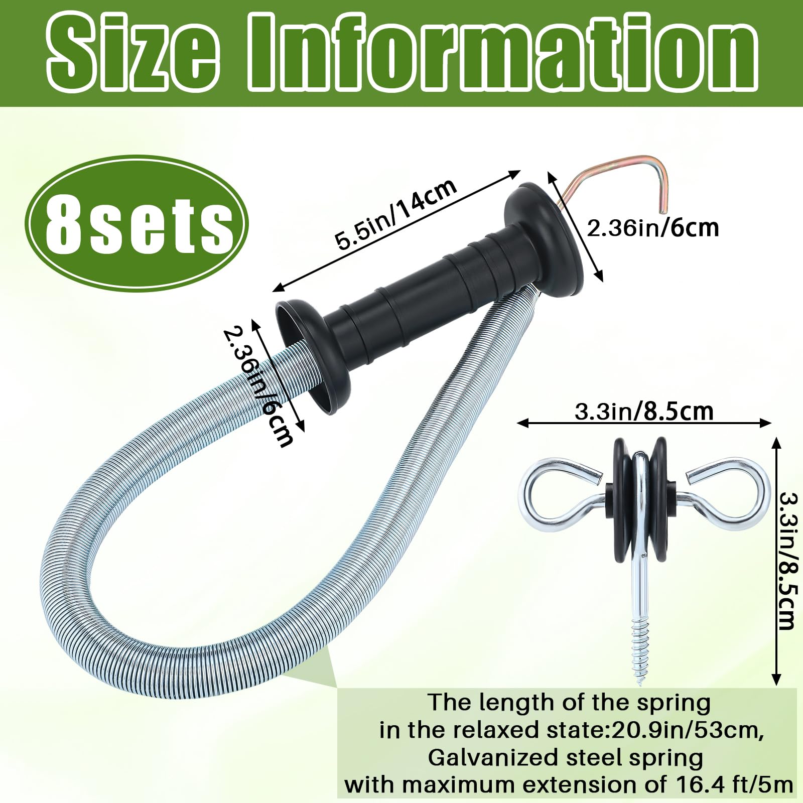 Package Include: we understand the convenience of receiving everything you need all at once; That's why our comprehensive package includes 4 pcs of electric fence handles with spring and 8 pcs of corner end screw in ring insulators, these 4 sets can enable you to complete the electric fence project